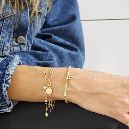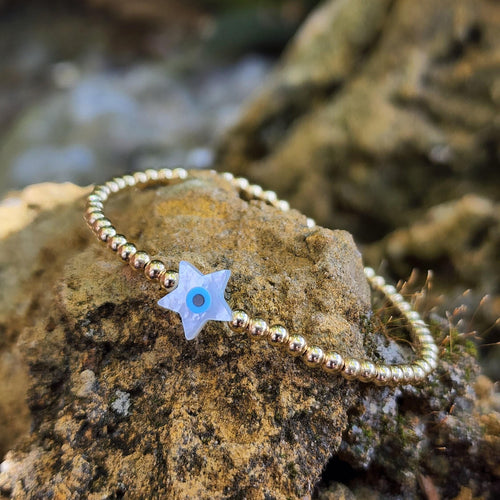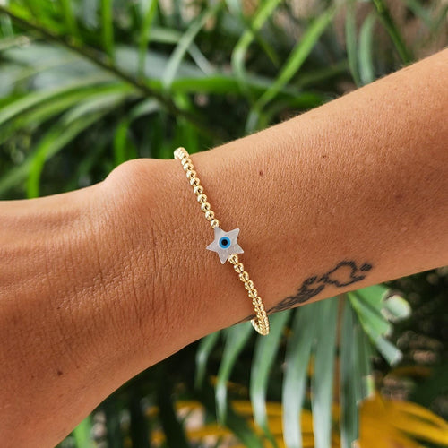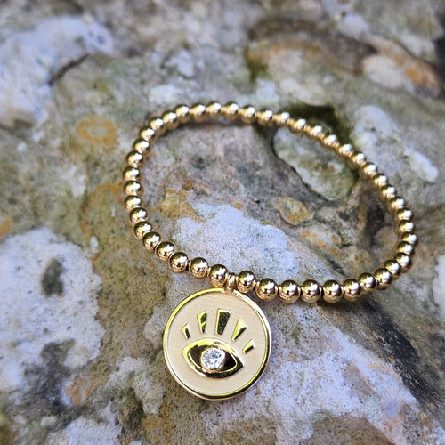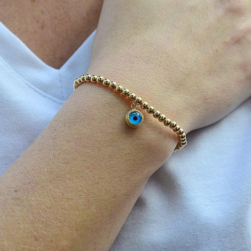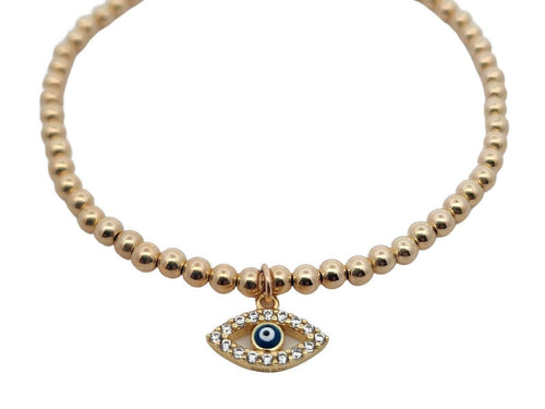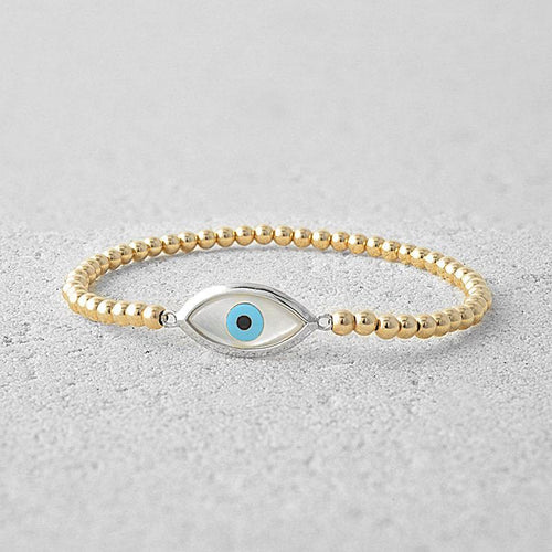 Gold Filled Evil Eye Stretch Bracelet - Spiritual Protection and Good LuckGold Filled Evil Eye Bracelet - Tarnish Free - Waterproof