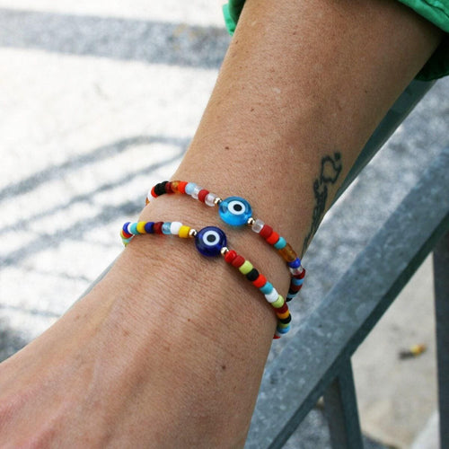 Boho Evil Eye Protection Stretch Bracelet - Good Luck Beaded Jewelry by Isabella Celini