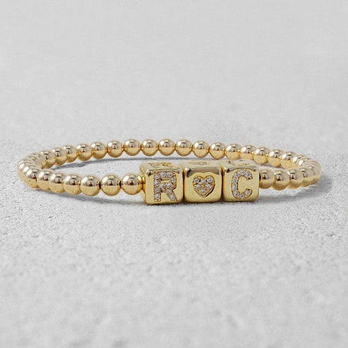 Customizable 14kt Gold Filled Cube Initial Beaded Bracelet - Personalized Gift for Women