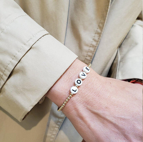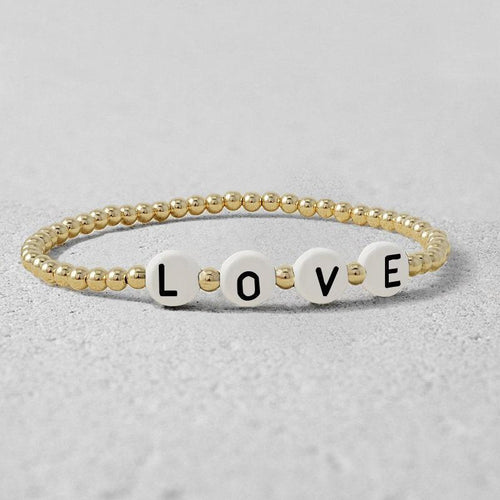 Customizable Gold Filled Beaded Word Bracelet - Personalized Stretch Bracelet for Women