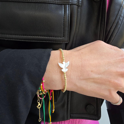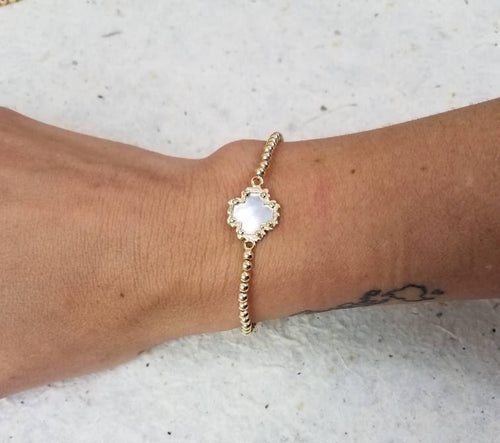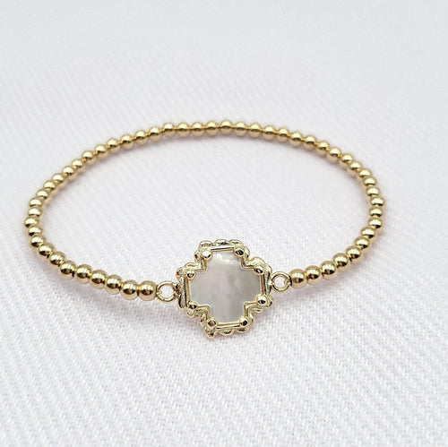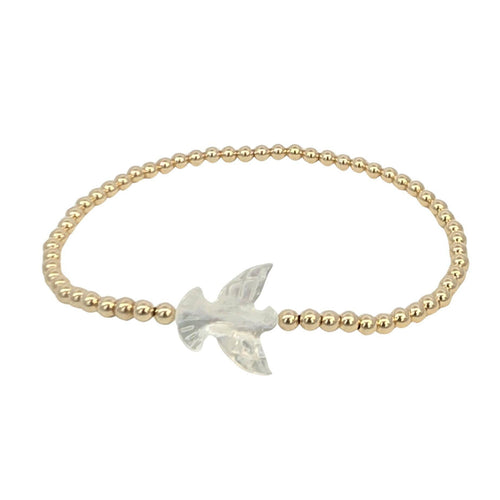 Dainty 14kt Gold Filled Pigeon Mother of Pearl Stretch Bracelet - Tarnish Free Jewelry