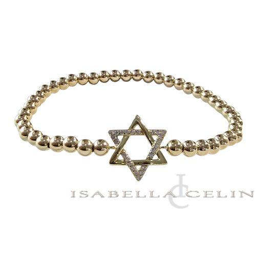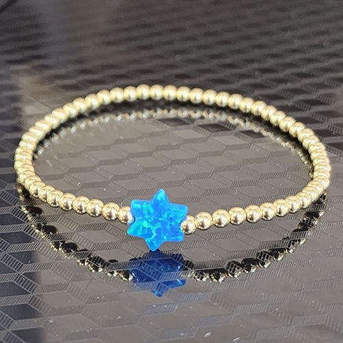 • Gold Filled Beaded Opal Star of David Bracelet, Gold Filled Beads, Stretch Stacking Bracelet, Protection Bracelet, Tarnish Free Jewelry