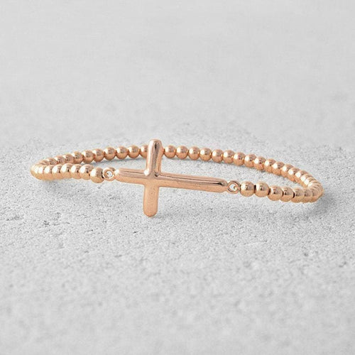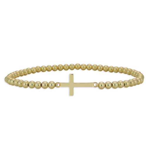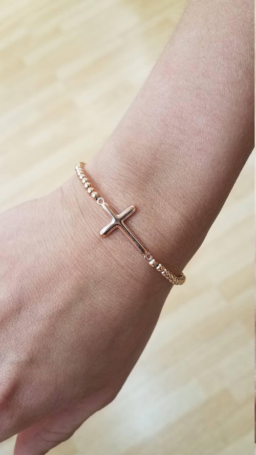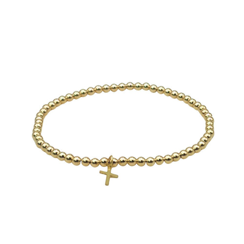 Dainty Gold Filled Cross Pendant Beaded Bracelet - Religious Women's Layering Jewelry
