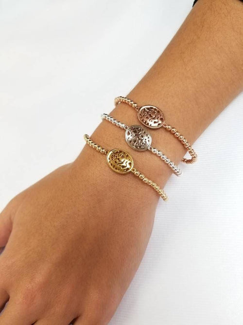 Buddhist GOLD FILLED Ball BRACELET – Women Non Tarnish Spiritual Small Wrist Beaded Bracelet