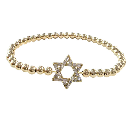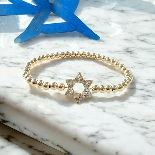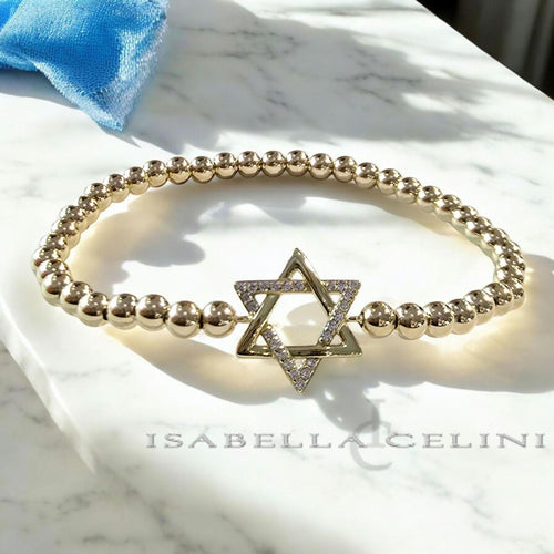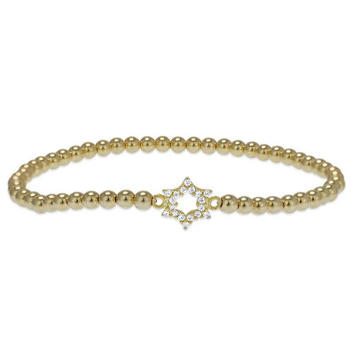 Delicate Gold Filled Beaded Star of David Stacking Bracelet - Small Wrist Bead Jewish Jewelry