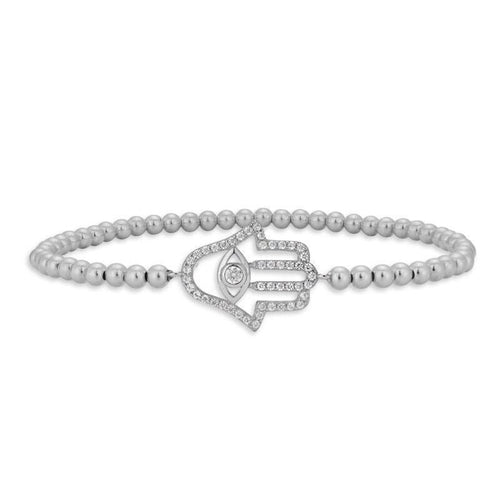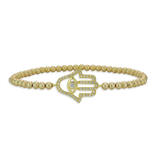 Gold Filled Hamsa Religious Bracelet with Cubic Zirconia Hand Pendant and Beaded Design