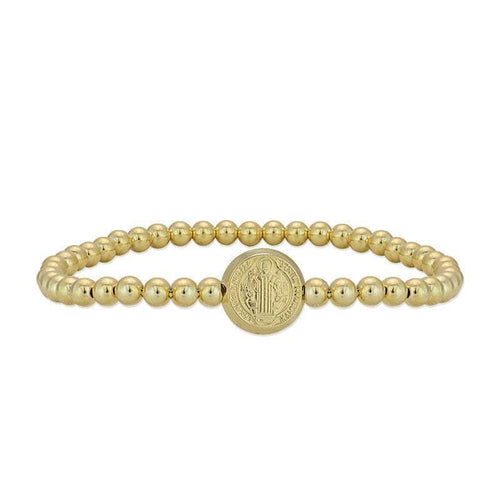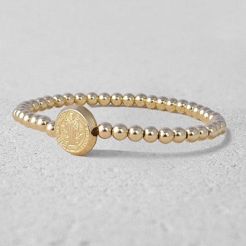 Elegant St Benedict Gold Filled Bracelet - Religious Charm Stretch Wrist Bracelet by Isabella Celini