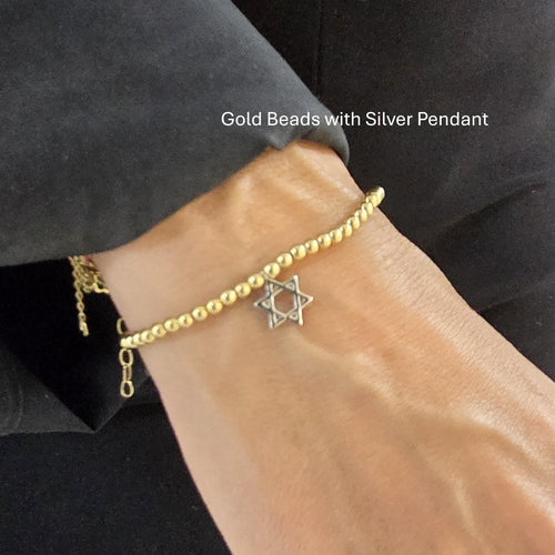 Jewish Bracelet with Gold Filled Beads and Israel Map Charm - Star of David Bracelet for Women