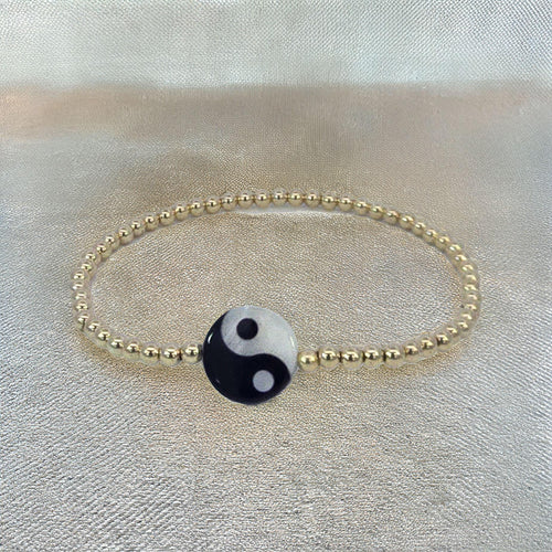 Ying Yang Gold Filled Bracelet, Isabella Celini, Gold Filled Beaded, Stretch Stacking Bracelet, Protection Bracelet, Good Karma Bracelet