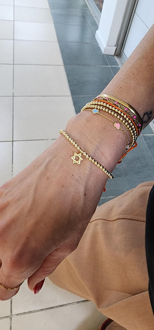 • Delicate Gold Filled Beaded Star of David Stacking Bracelet - Small Wrist Bead Jewish Jewelry