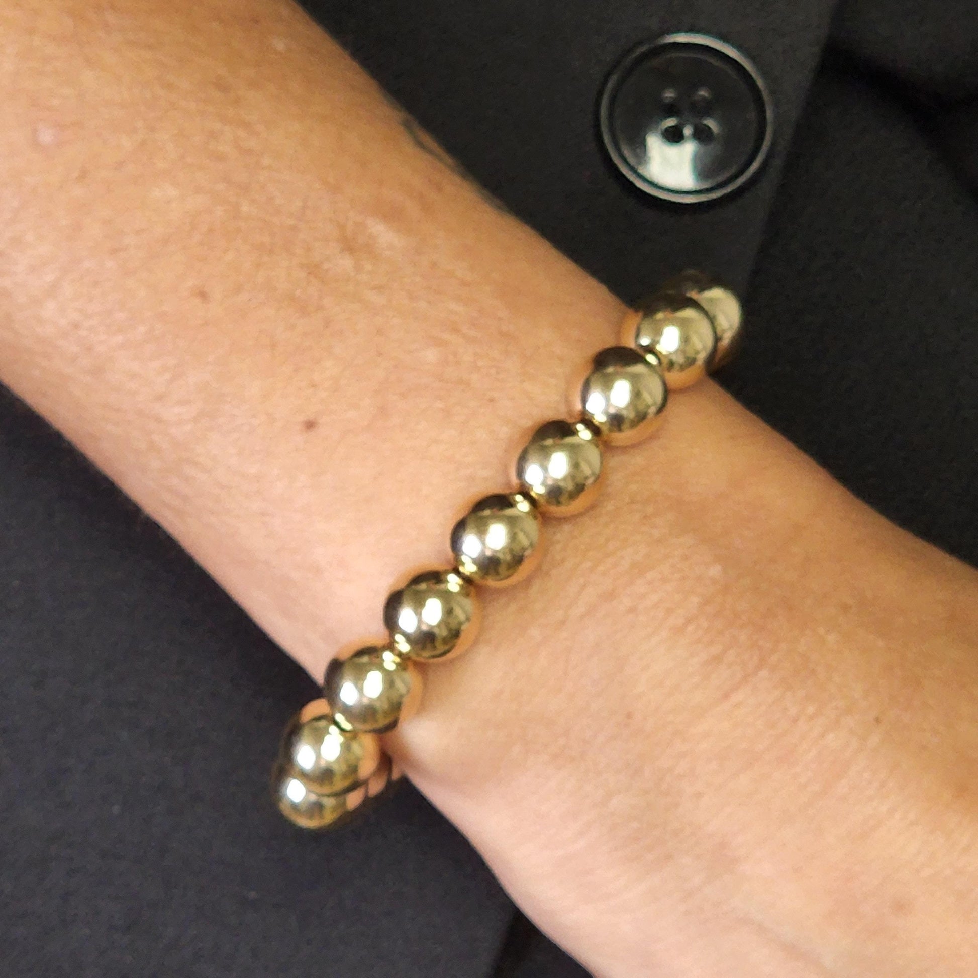 10mm 14kt Gold Filled Beaded Stretch Bracelet - Tarnish-Free Waterproof Jewelry for Women