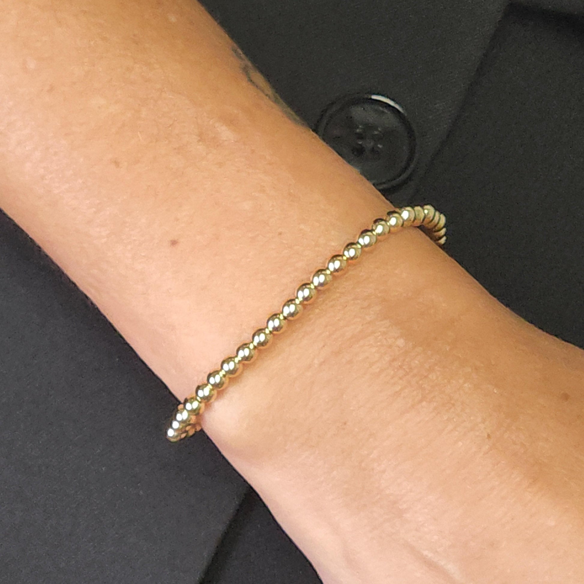 14K Gold Filled Beaded Bracelet for Women - Tarnish Free Waterproof 4mm - Handmade Stretch - Gold Filled Silver or Rose Gold Options