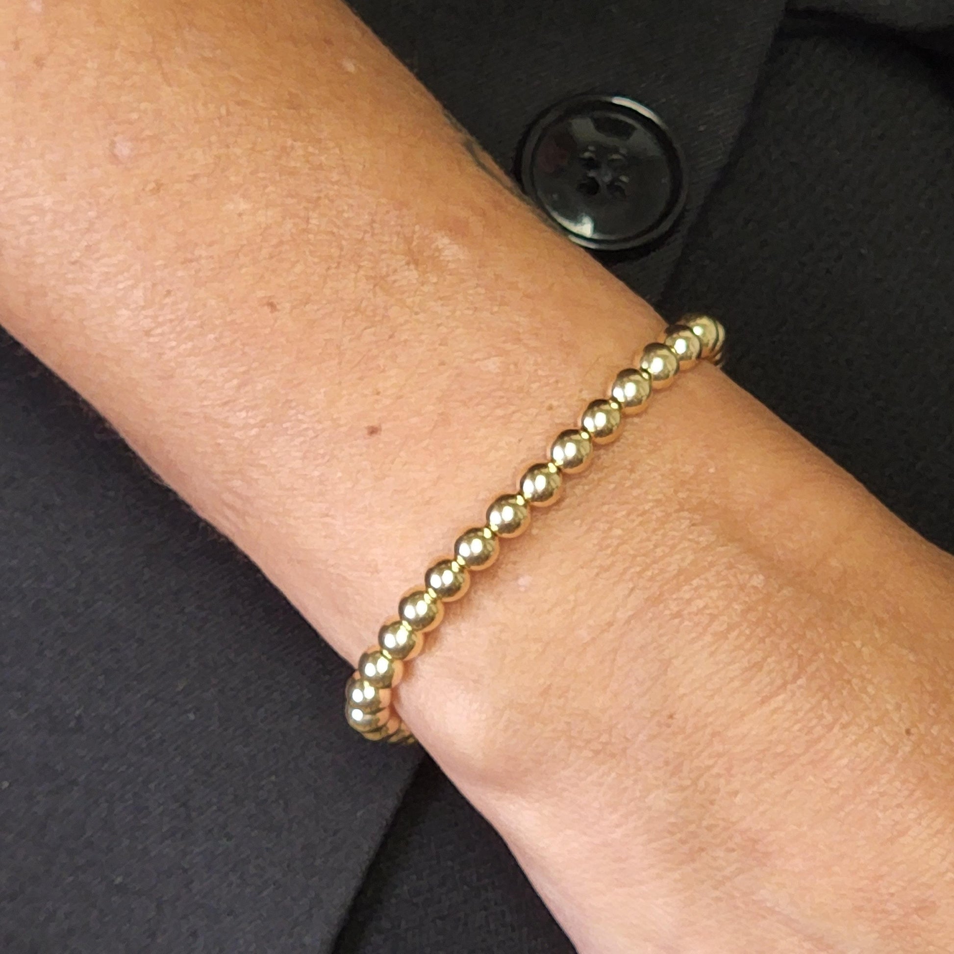 14kt Gold Filled 5mm Beaded Stacking Bracelet - Womens Stretchy Layering Gold-Filled Bracelet Tarnish-Free and Waterproof