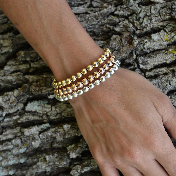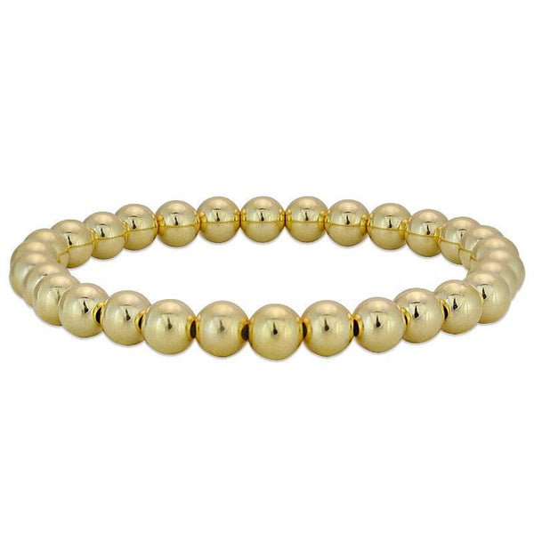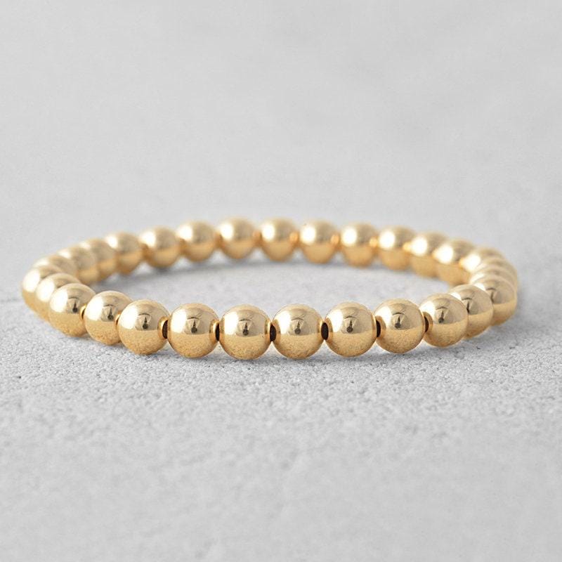 14kt Gold Filled 6mm Beaded Stacking Bracelet for Women - Stretch Fit Tarnish-Free Waterproof