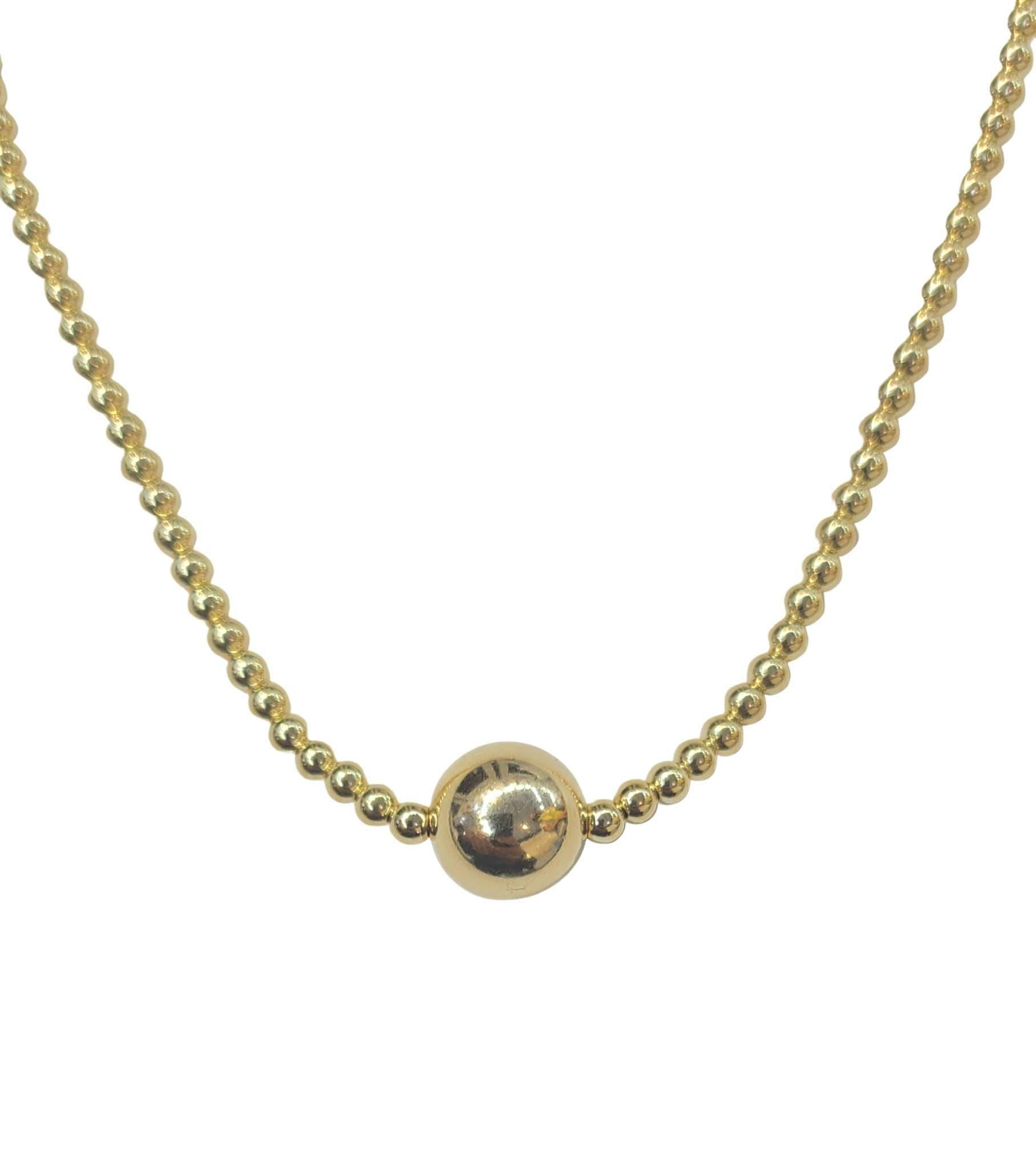 14kt Gold Filled Beaded Layering Necklace Handcrafted with Gold-Filled Beads 10mm Bead Centerpiece Adjustable Length Isabella Celini
