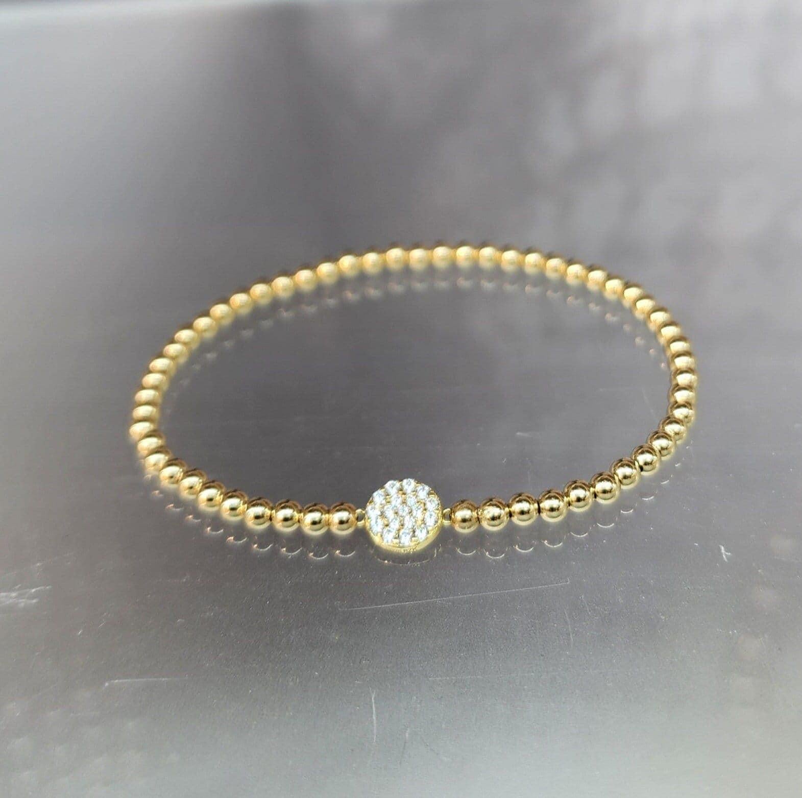 14kt Gold Filled CZ Disc Stretch Beaded Bracelet for Women by Isabella Celini