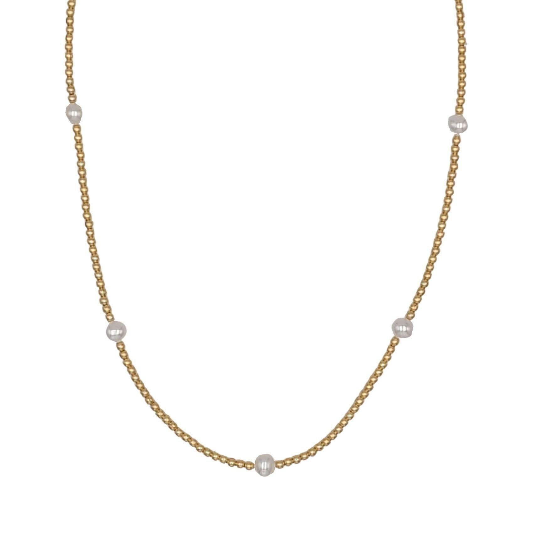 14kt Gold Filled Freshwater Pearl Station Necklace - Dainty Beaded Layering Necklace Tarnish-Free by Isabella Celini