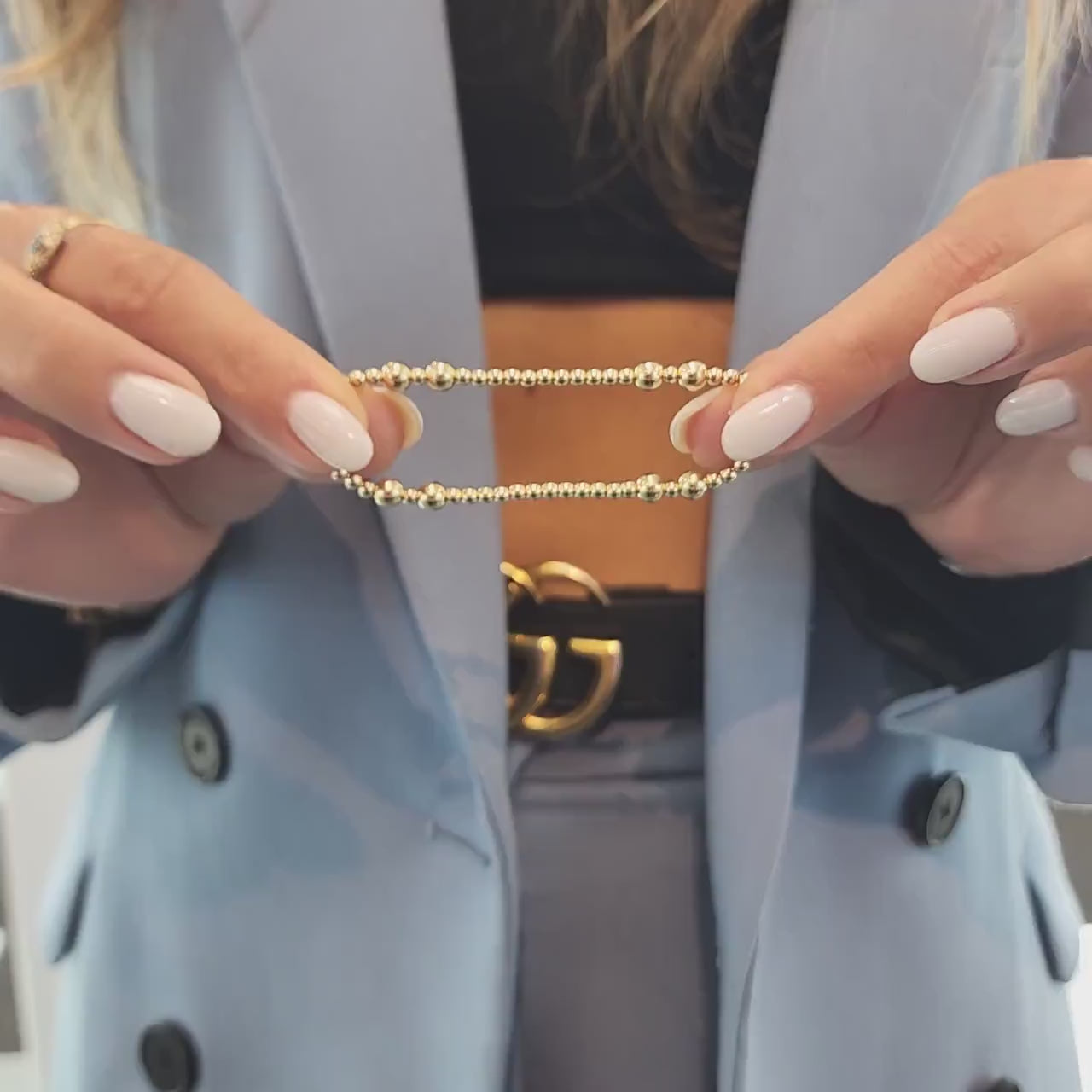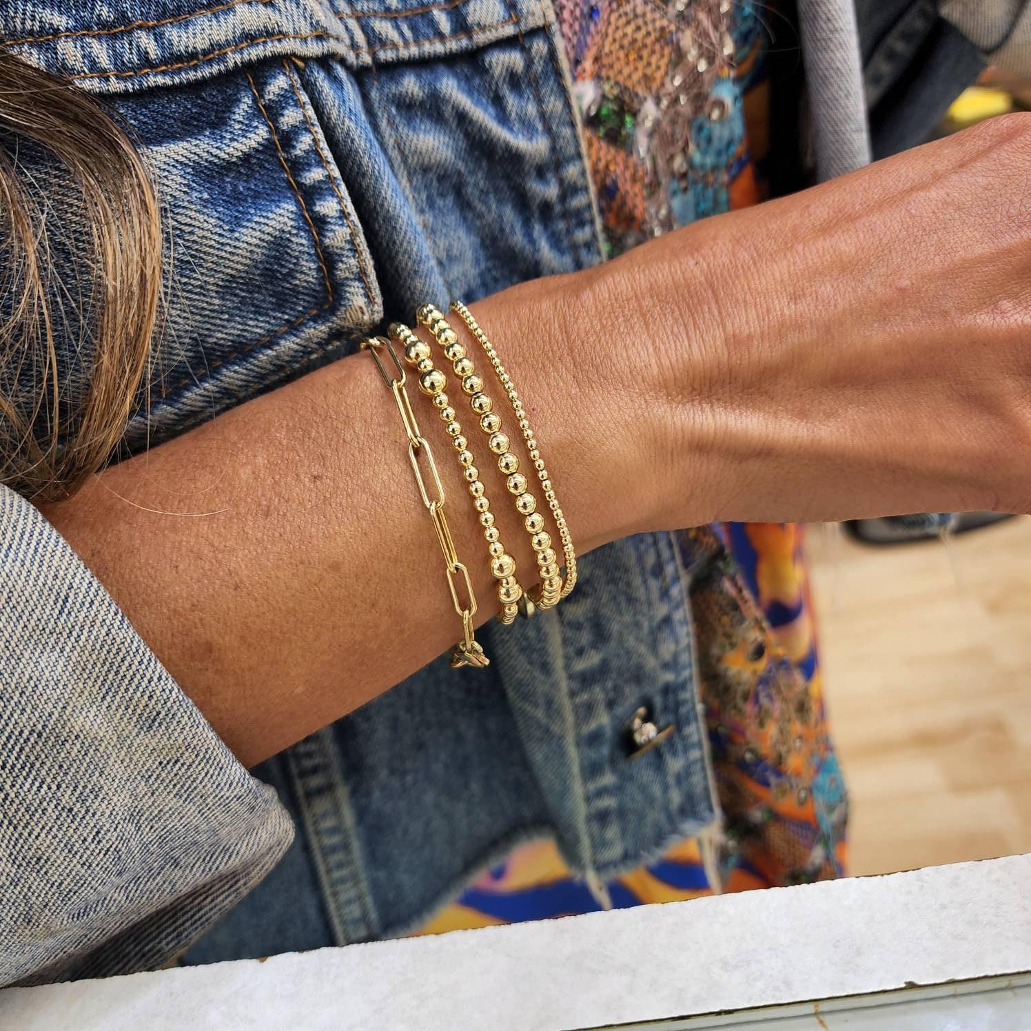 14kt Gold Filled Stacking Beaded Bracelet - 3 mm and 5 mm Station Beaded Ladies Waterproof and Tarnish-Free Stretch Bracelet