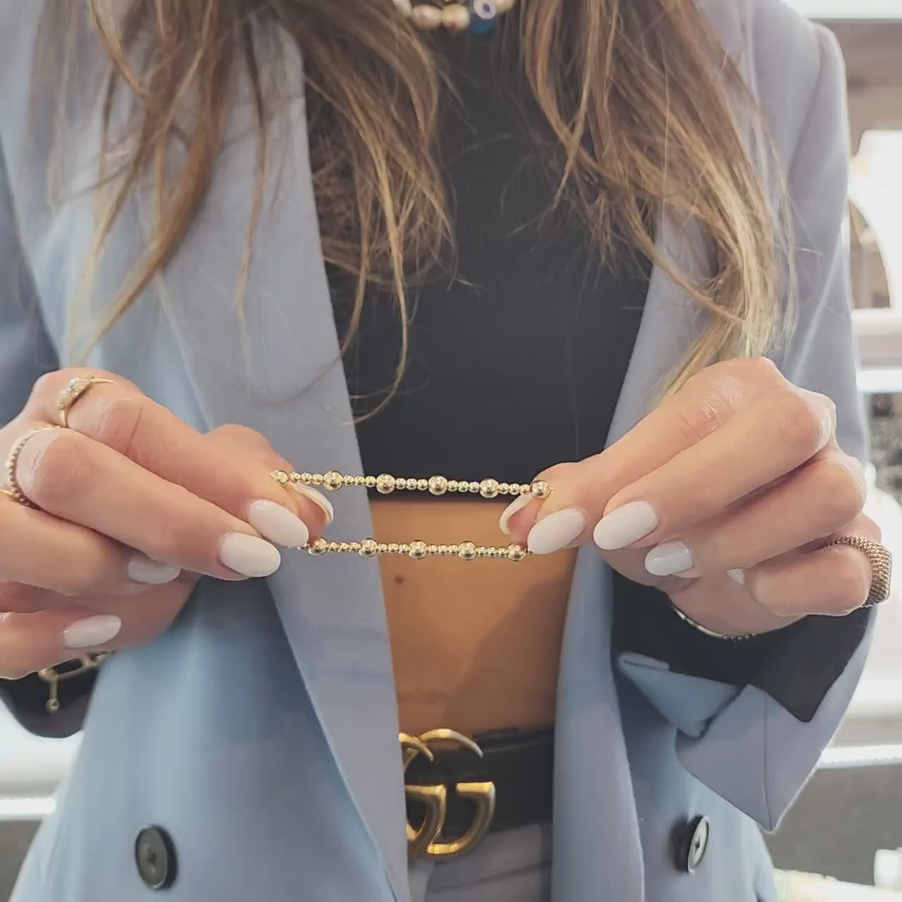 14kt Gold Filled Stretch Bracelet with Beaded Design for Women - 3 mm and 5 mm - Tarnish Resistant Waterproof Handcrafted by Isabella Celini