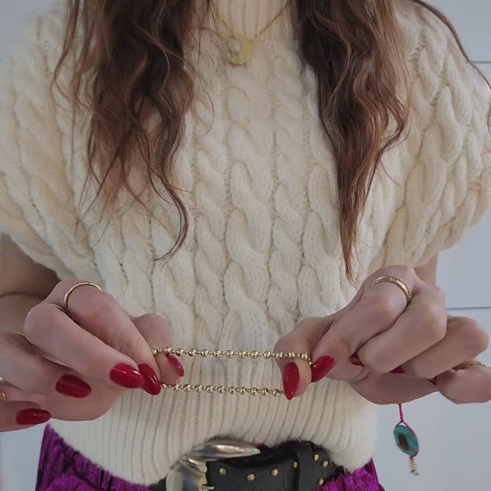 Handcrafted with care in our Miami workshop, this bracelet is made to order, ensuring each piece meets our high standards. The gold filled beads shine brilliantly and the flexible design means it will comfortably fit most wrist sizes. Choose from a variety of sizes to find your perfect fit. Whether you're treating yourself or looking for a thoughtful gift, this bracelet is sure to impress.