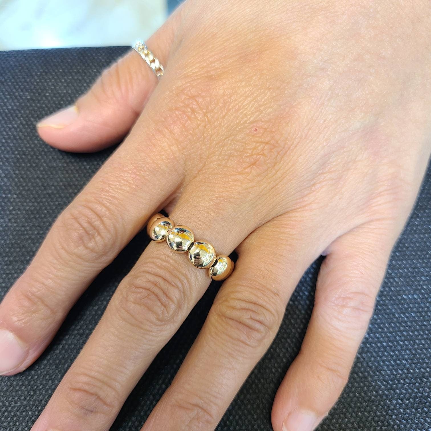 Discover the allure of our Gold Filled STACKING LAYERED RING, meticulously handcrafted in our Miami workshop. This ring seamlessly blends classic stretch with minimalist boho style, making it a versatile addition to any jewelry collection. Each ring features delicate 7 mm gold filled beads, exuding a subtle charm that enhances every outfit, from casual daywear to elegant evening attire.