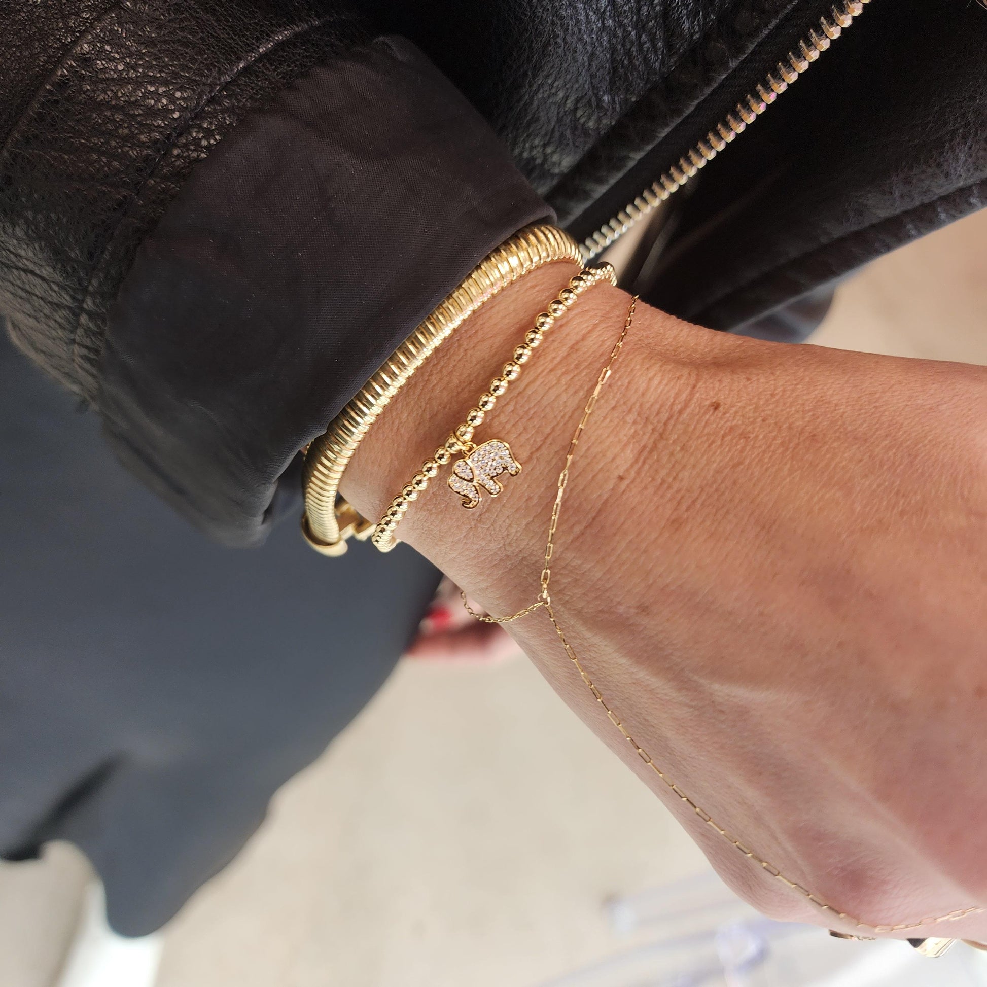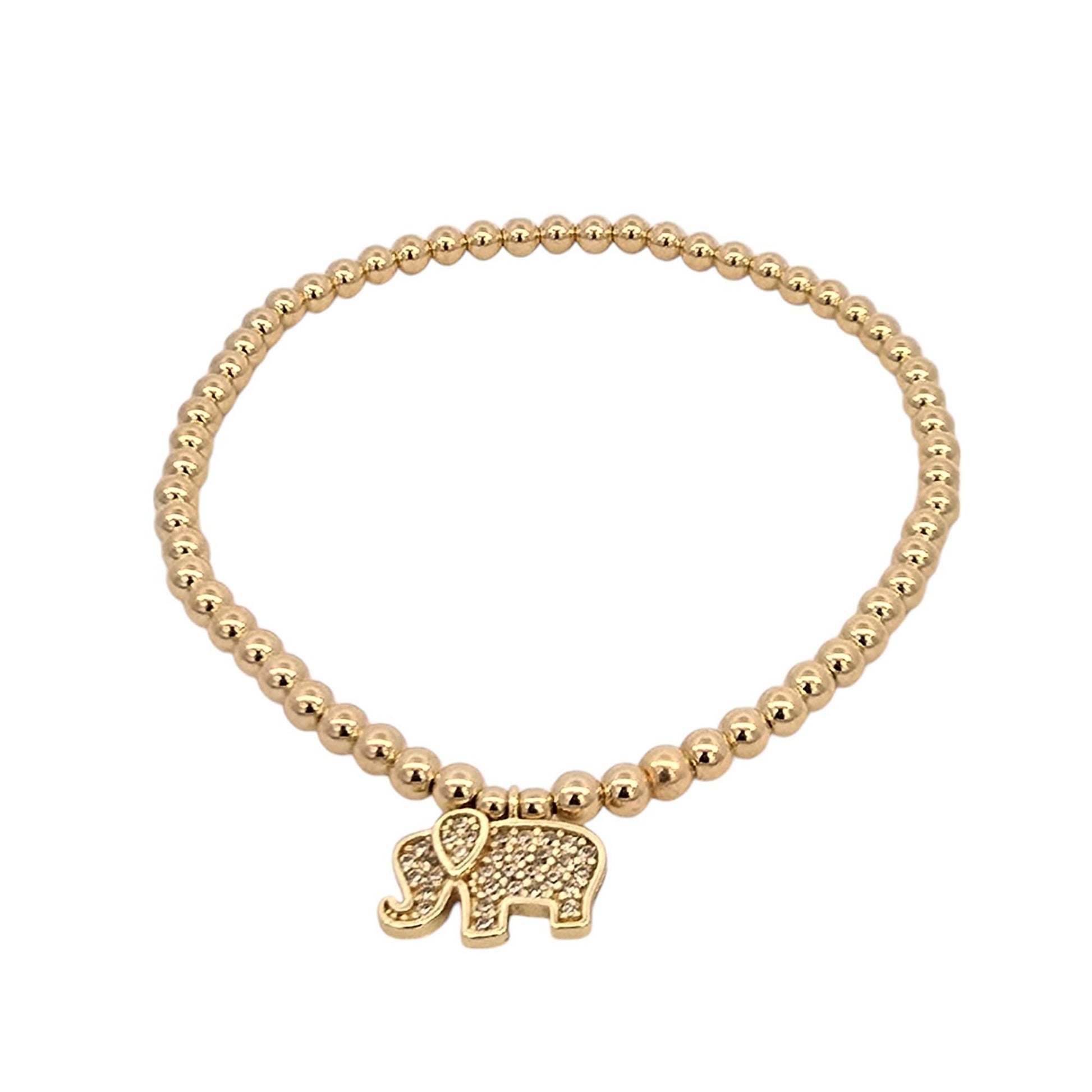 Adjustable Gold Filled Elephant Charm Bracelet - Stacking Stretch Gift for Women
