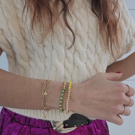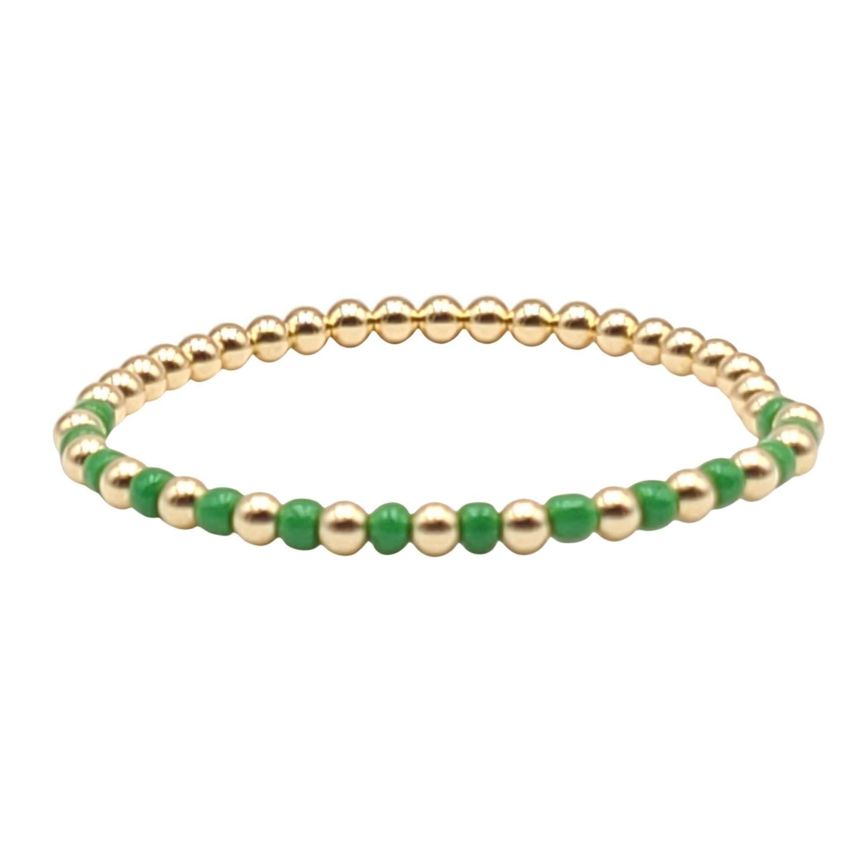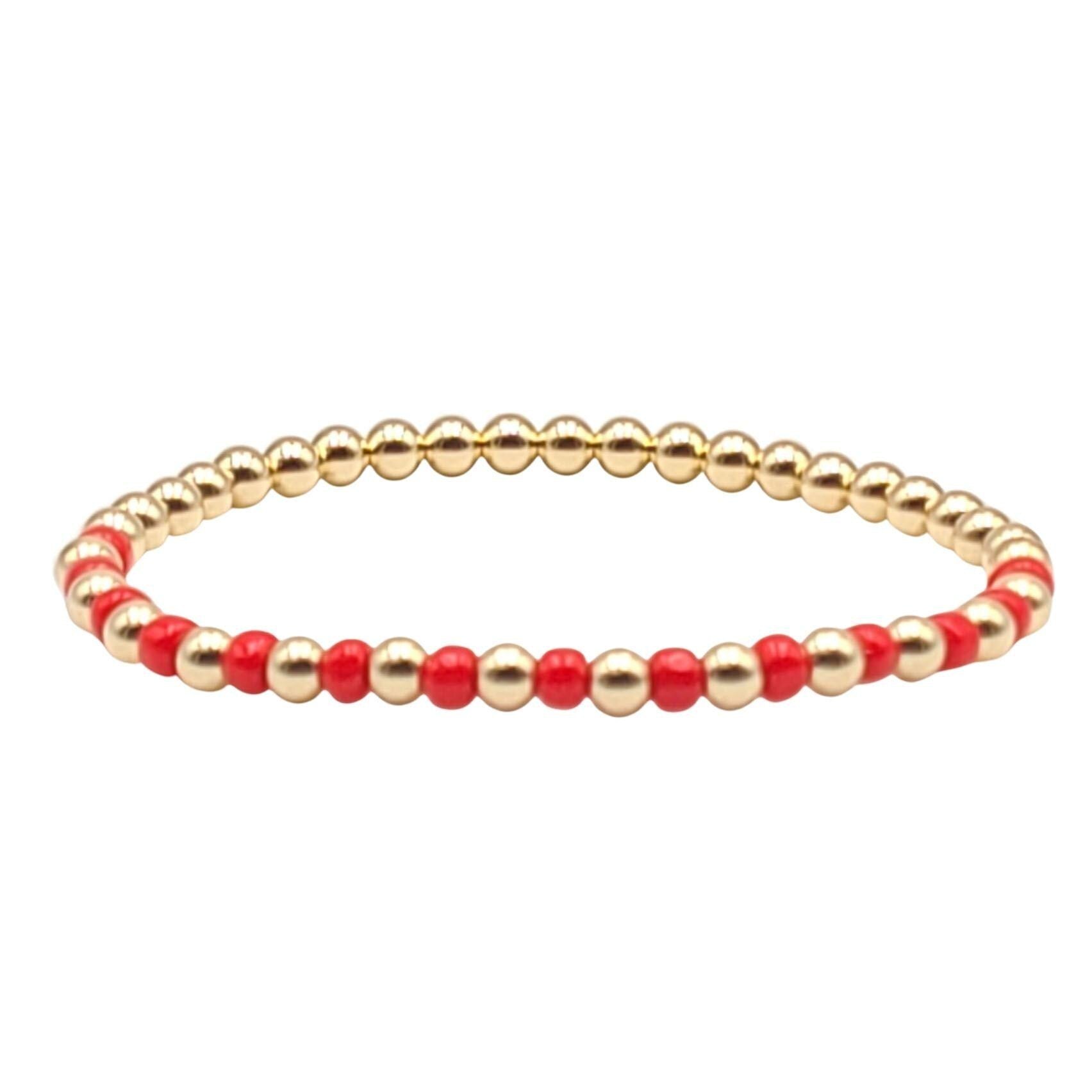 Discover the essence of boho-chic with our stunning Gold Filled Stackable Beaded Bracelet For Women. Handcrafted to perfection in our Miami workshop, this bracelet blends vibrant 4 mm glass beads with gleaming gold filled beads for a look that's both elegant and free-spirited. Each piece is made to order, ensuring a personal touch and superior craftsmanship that you'll cherish.