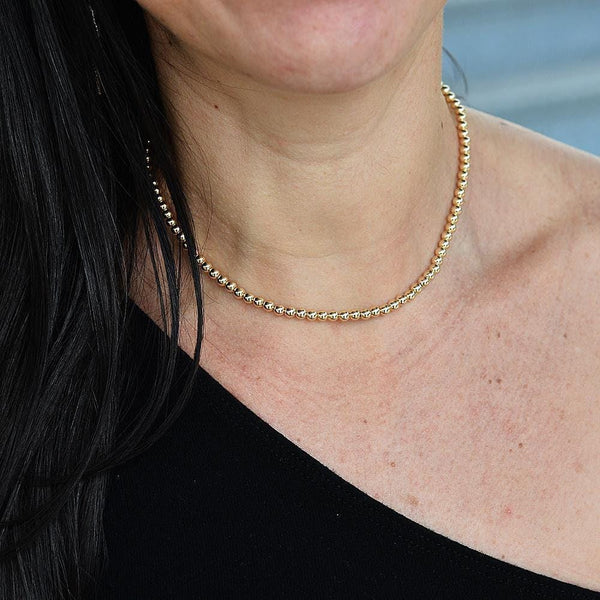 Dainty 4 mm Gold Filled Beaded Layering Necklace – Stylish Tarnish Free, Water Resistant Layering Necklace
