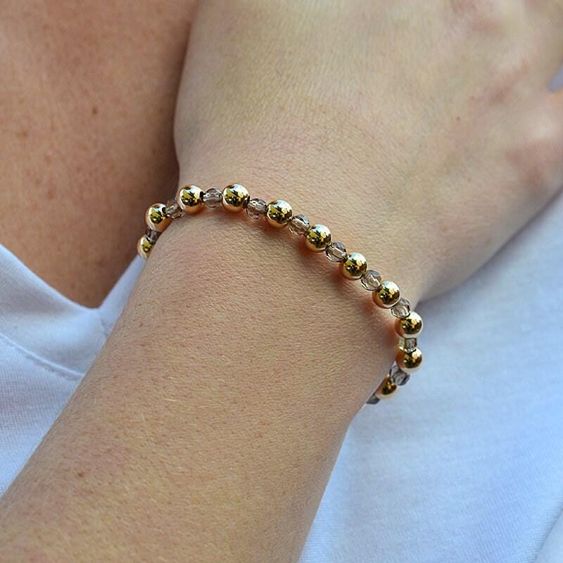 Dainty Gold Filled Beaded Bracelet - Womens Stretch Stacking Bracelet with Color Beads