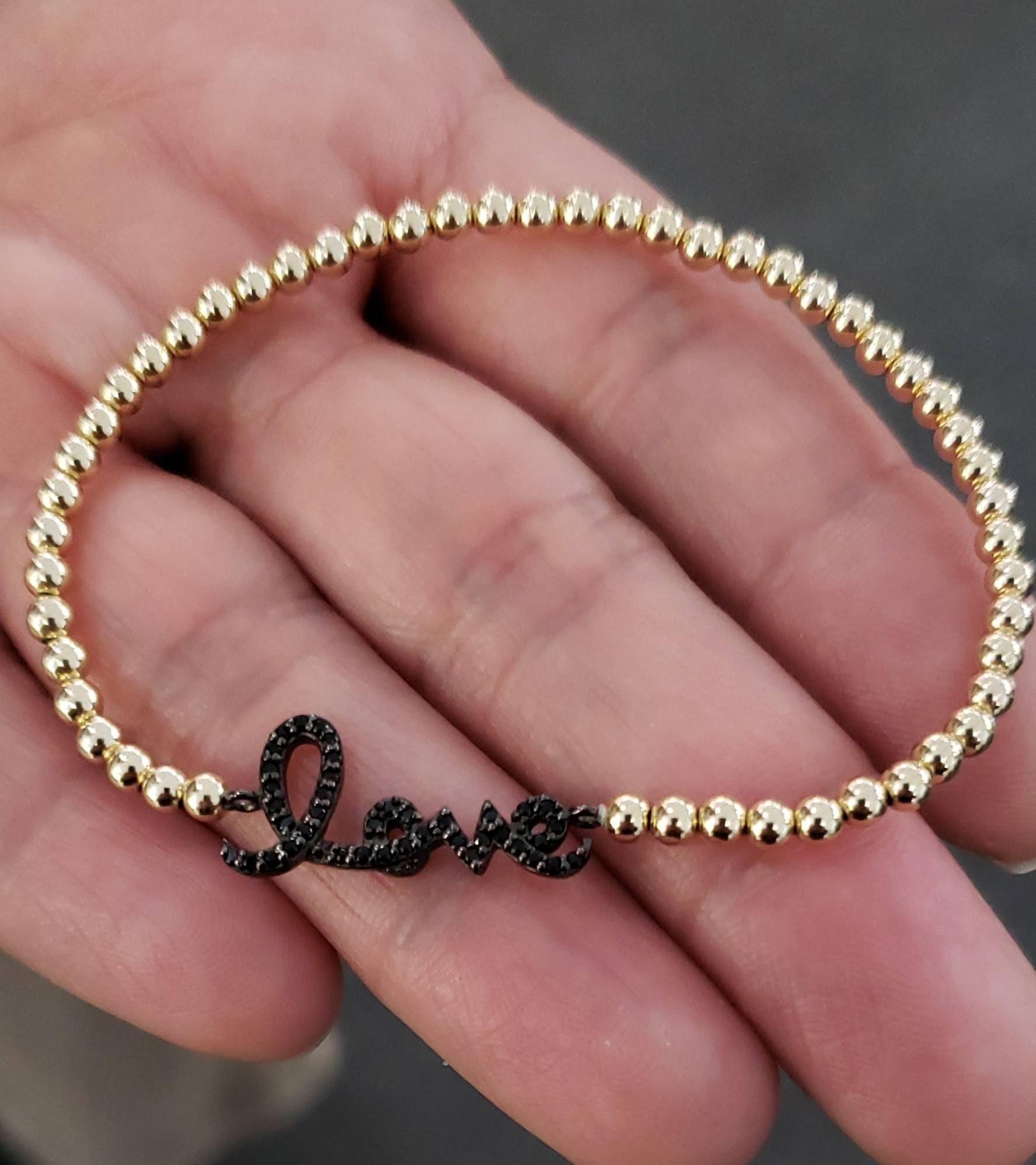 Dainty Gold Filled Beaded Script Love Bracelet - CZ Pendant Stacking Jewelry for Women - Special Gift for Her