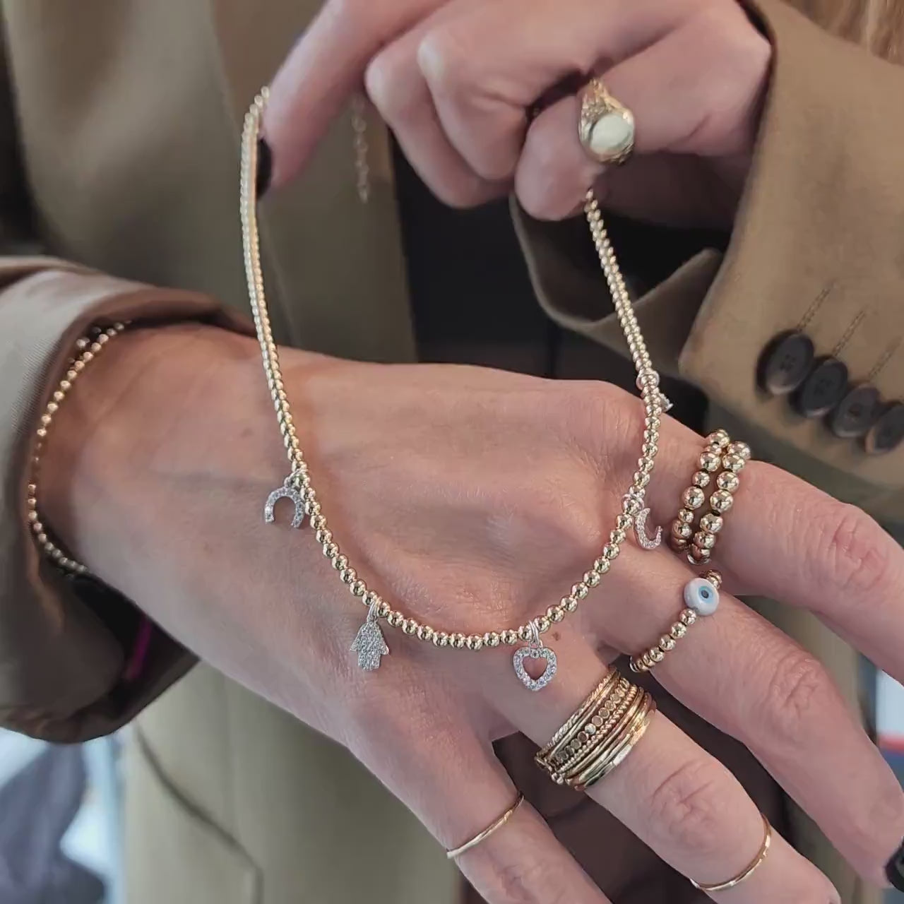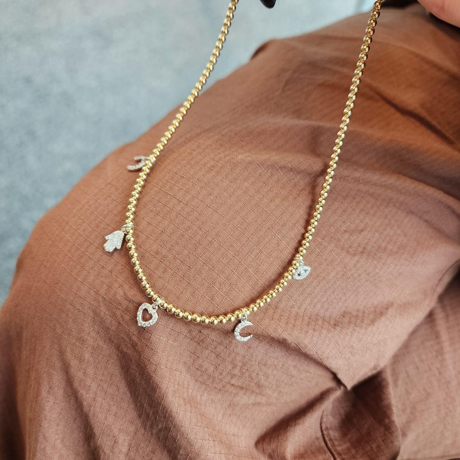 Crafted with care in our Miami workshop, each necklace is made to order, ensuring you receive a piece that's crafted just for you. The adjustable length and bead chain style make it a versatile addition to your jewelry collection, perfect for mixing and matching with other pieces. The gold-filled beads and sterling silver charms add a touch of luxury, making it a thoughtful gift for bridesmaids or a special treat for yourself.