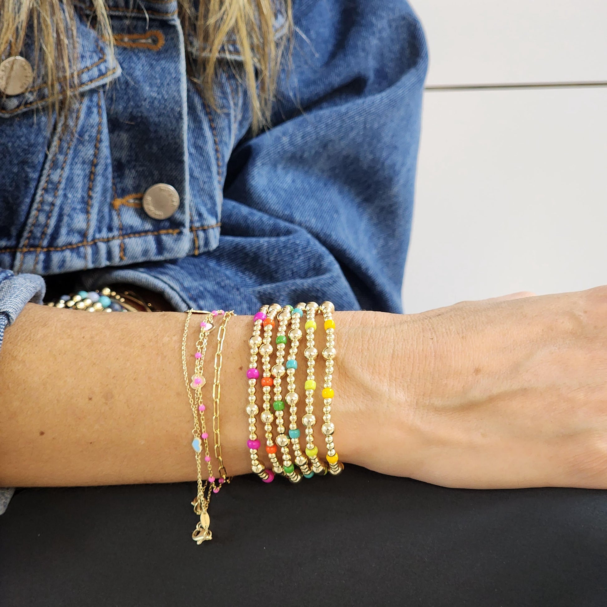 Dainty Stretch Bracelet 14k Gold Filled - Colorful Beads - Gift for Women - Tarnish Free Jewelry Stacking Bracelet