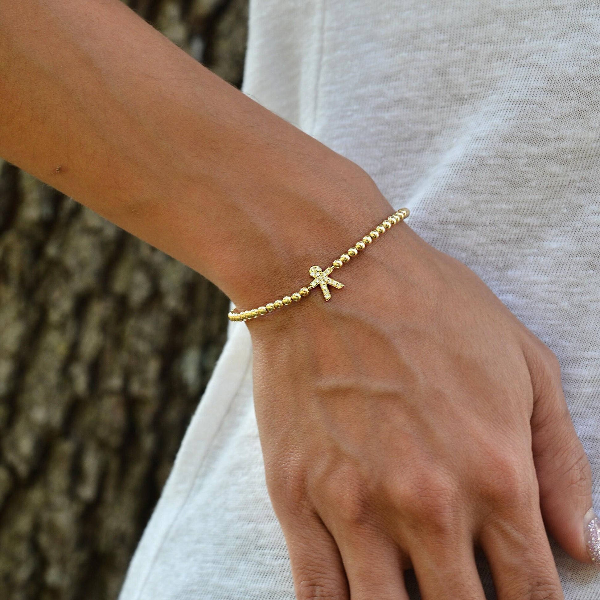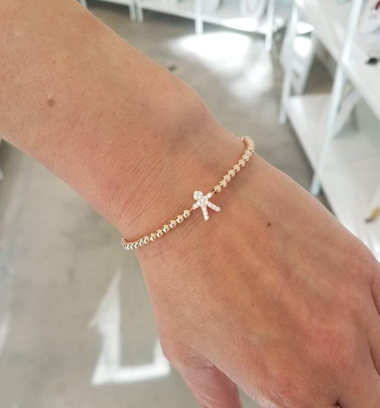 The bracelet features 3 mm Gold Filled beads that are both tarnish-resistant and safe to wear in water, offering a worry-free accessory that maintains its shine over time. The focal point is adorned with a boy charm crafted from Sterling Silver, available in Gold Plated, Rose Gold Plated, or pure Sterling Silver finishes, each adding a unique touch of elegance to your ensemble.
