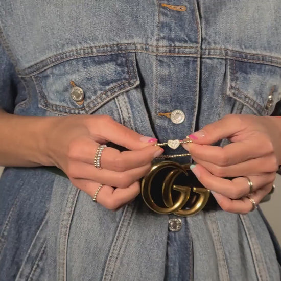Embrace the subtle sparkle of cubic zirconia set within a heart-shaped, gold-plated sterling silver charm. This dainty yet eye-catching design adds a touch of romance and femininity to any outfit, making it a perfect accessory for both casual wear and special occasions. The adjustable feature allows for a customized fit, ensuring comfort and ease of wear throughout the day.