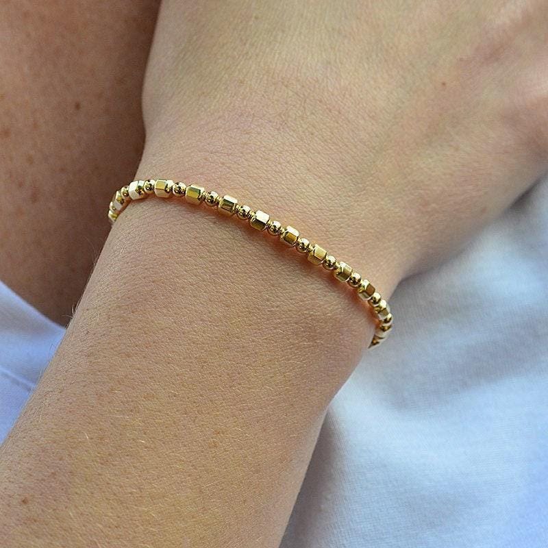 Faceted Gold Filled Stackable Bracelet - Waterproof and Tarnish Free Jewelry for Women
