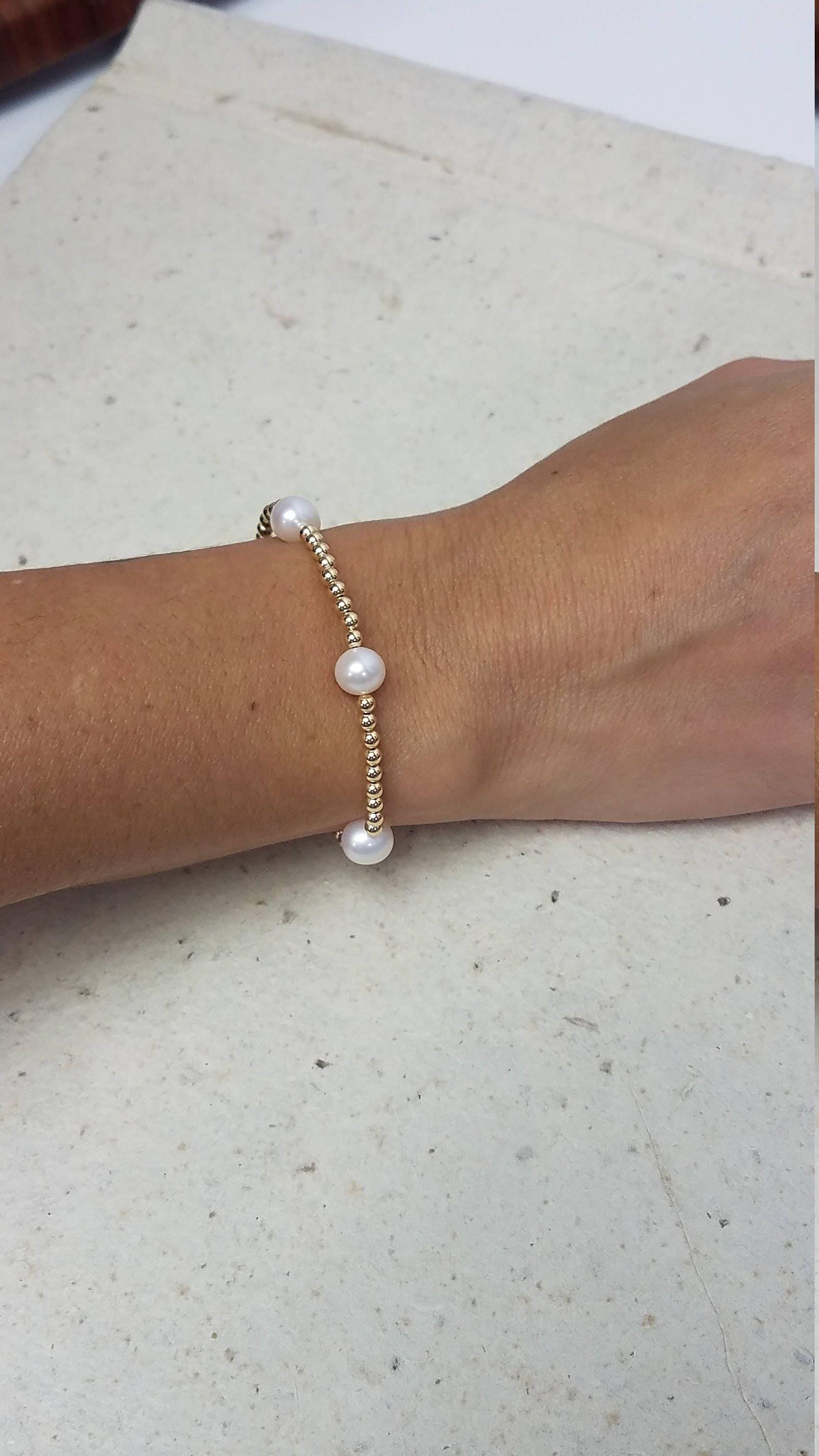 Fresh Water Pearl Gold Filled Bracelet, Isabella Celini, Gold Filled Beads, Stretch Stacking Bracelet, Gift for Women, Bridesmaid Gift