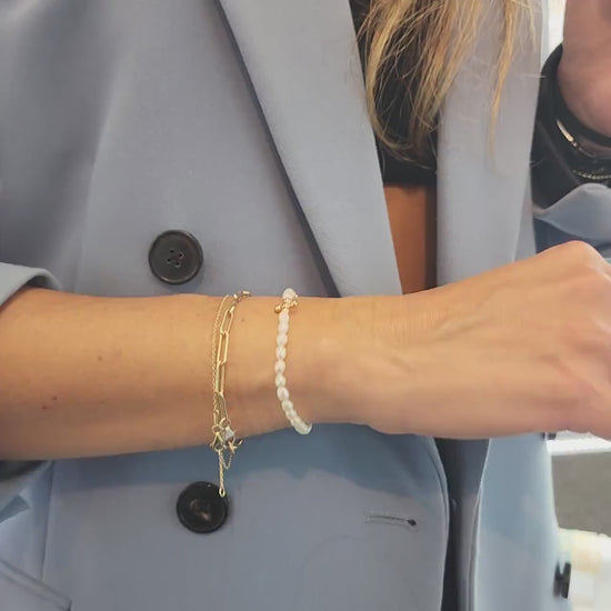 Indulge in timeless elegance with our Cross GOLD FILLED Pearl Ball Bracelet, a delicate blend of sophistication and simplicity that adds a touch of grace to any ensemble. Handcrafted with care in our Miami workshop, this bracelet features oval 4*6mm fresh water pearls that exude natural beauty and charm. Each pearl is unique, varying slightly in size and shape due to their natural state, ensuring that every piece is one-of-a-kind.