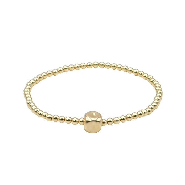 Gold Filled Beaded Bracelet - Stretch Cube Pendant for Women Tarnish-Free and Waterproof Jewelry
