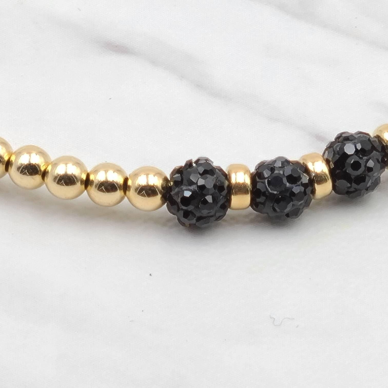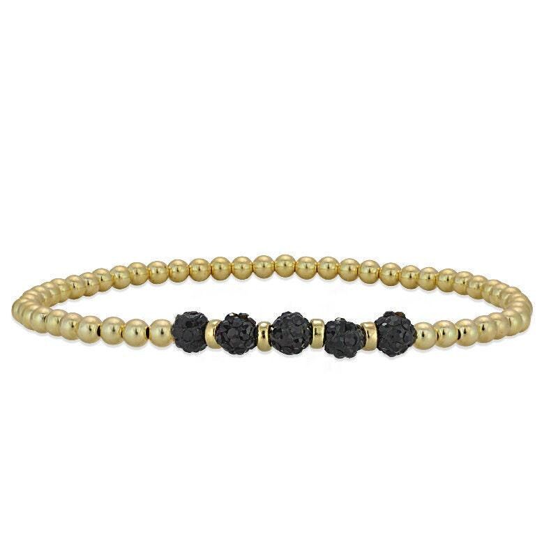 Gold Filled Beaded Bracelet with Bohemian Style and Cubic Zirconia Pave Ball - Stretch Design