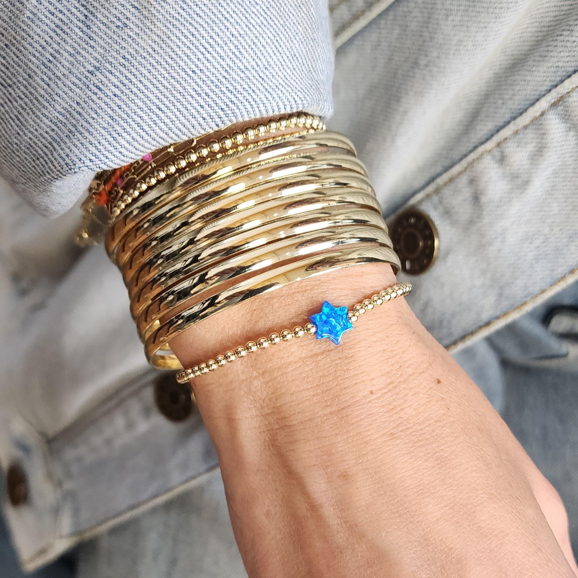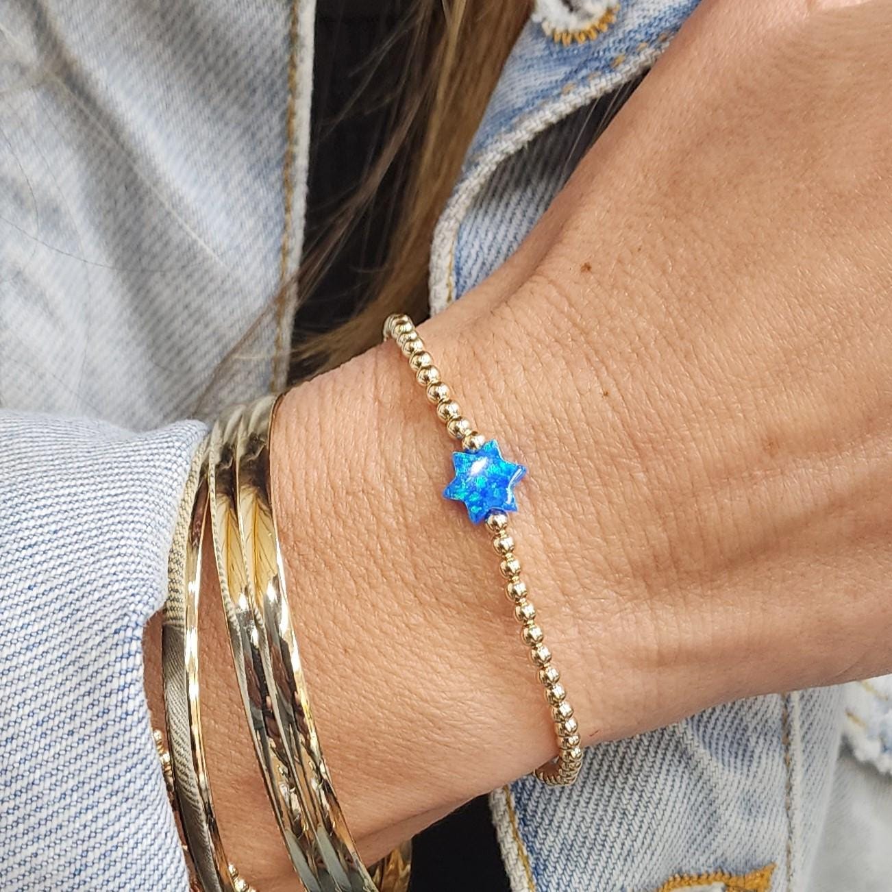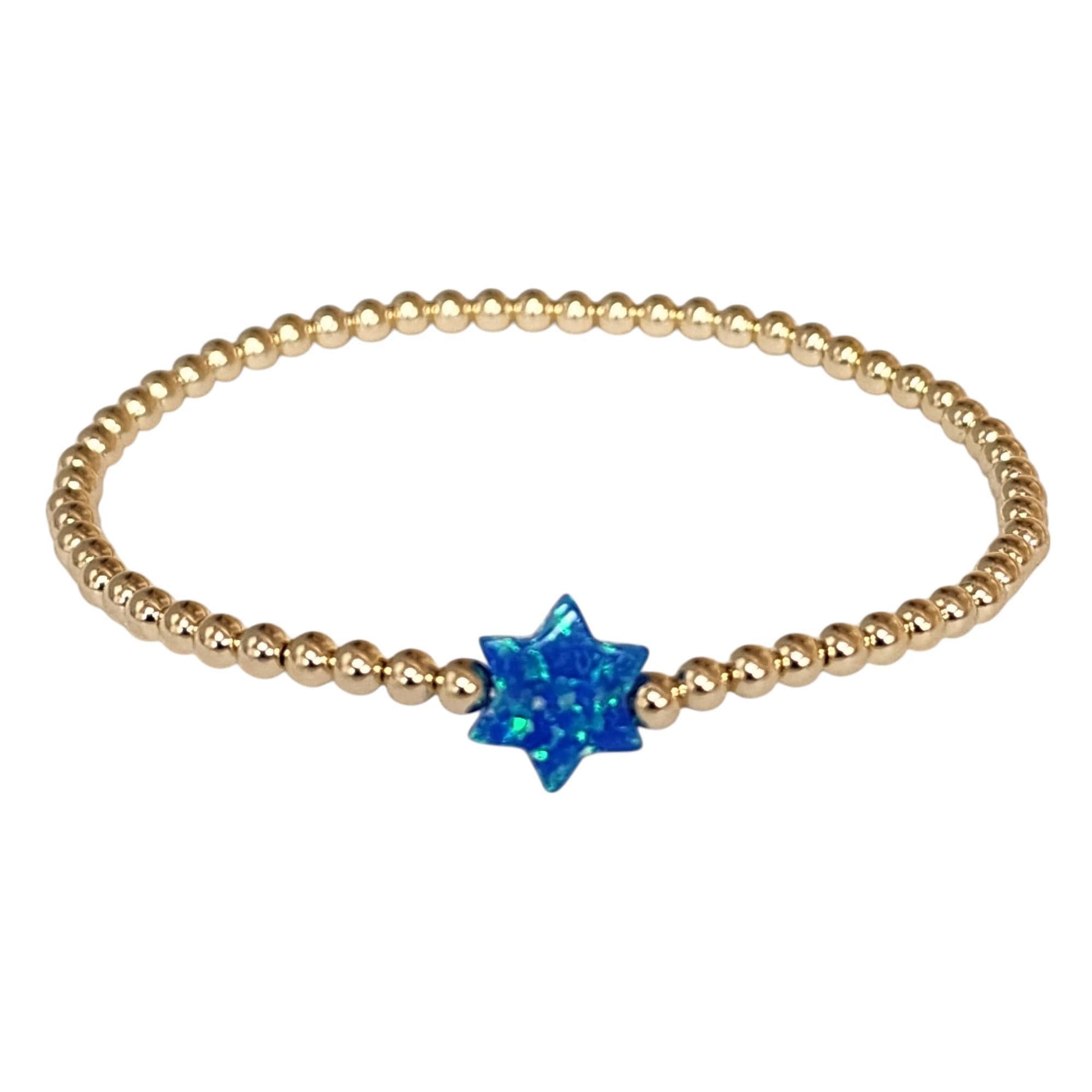 Gold Filled Beaded Opal Star of David Bracelet, Gold Filled Beads, Stretch Stacking Bracelet, Protection Bracelet, Tarnish Free Jewelry