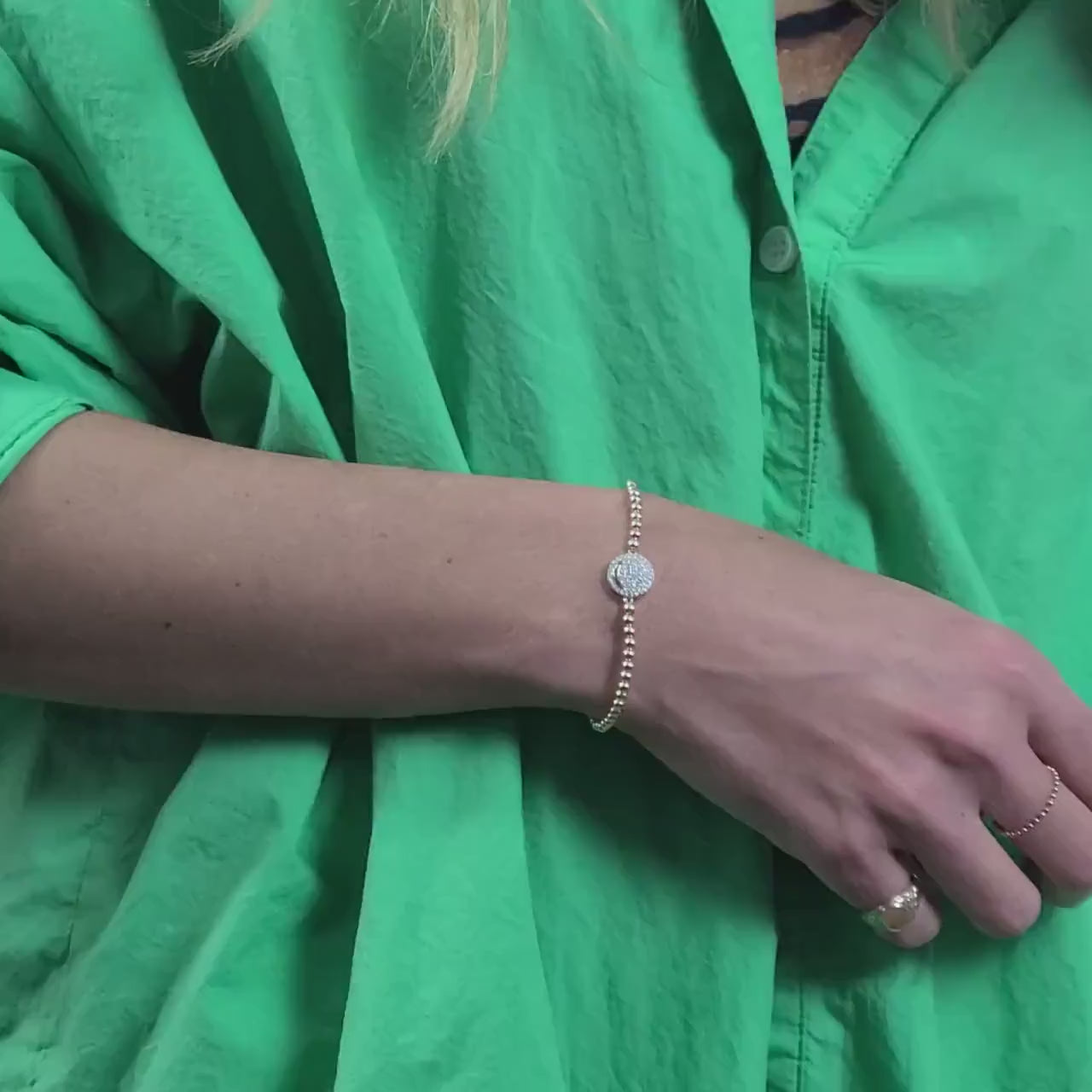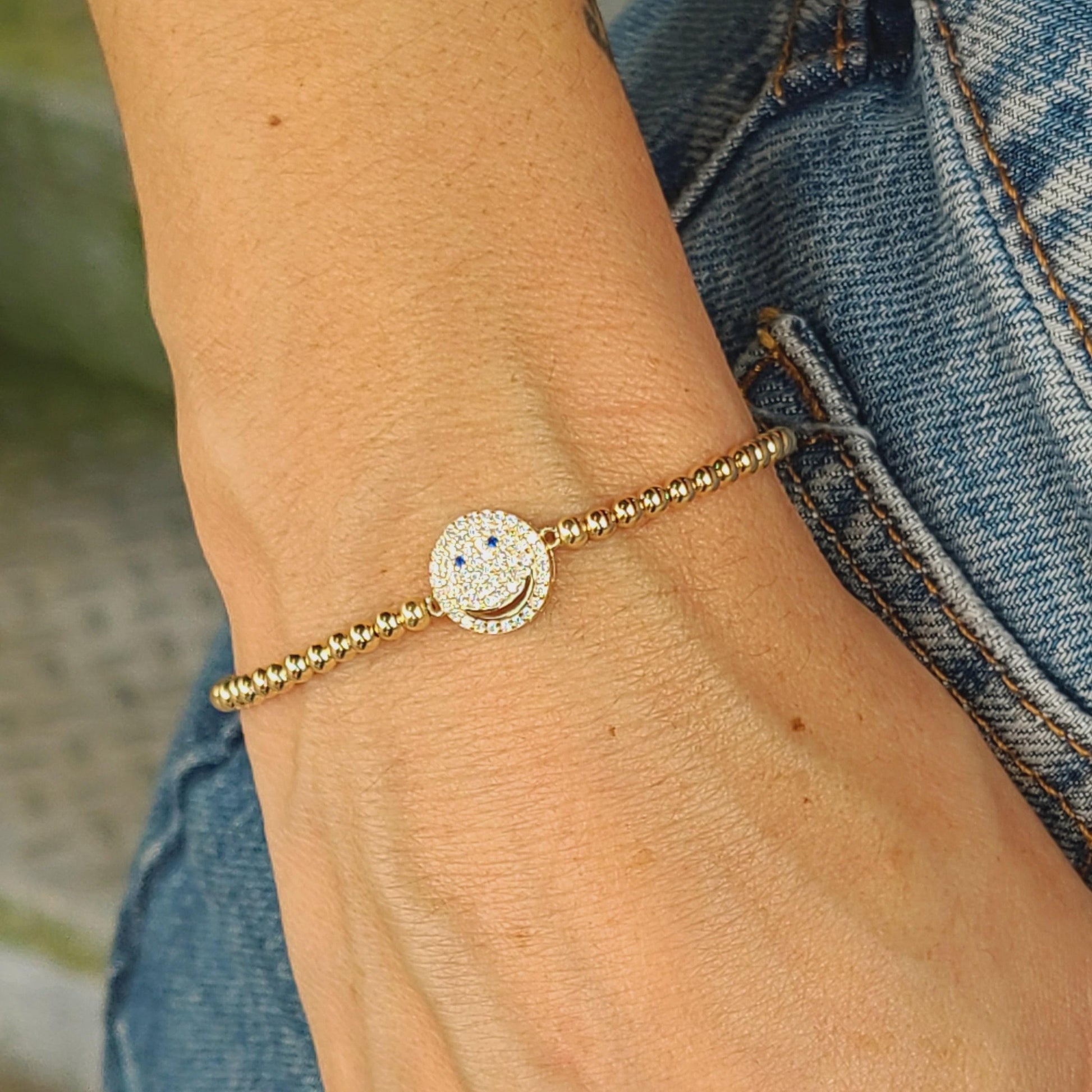 Gold Filled CZ Smiley Face Beaded Stacking Bracelet for Women - Stretch Stacking Bracelet