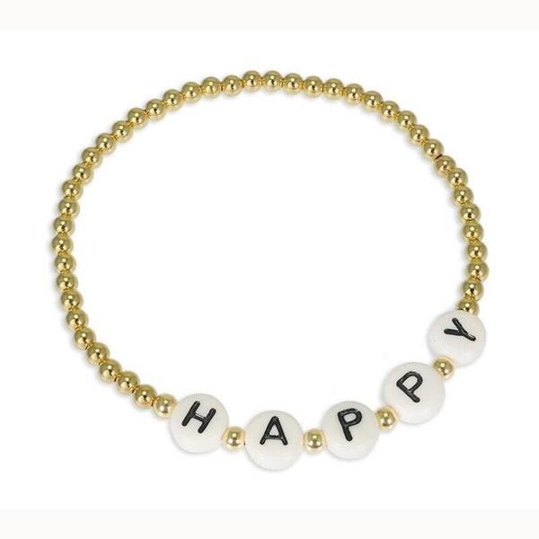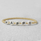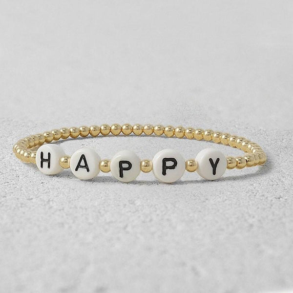 Gold Filled Happy Letter Beaded Bracelet - Customizable Tarnish-Free Waterproof Jewelry