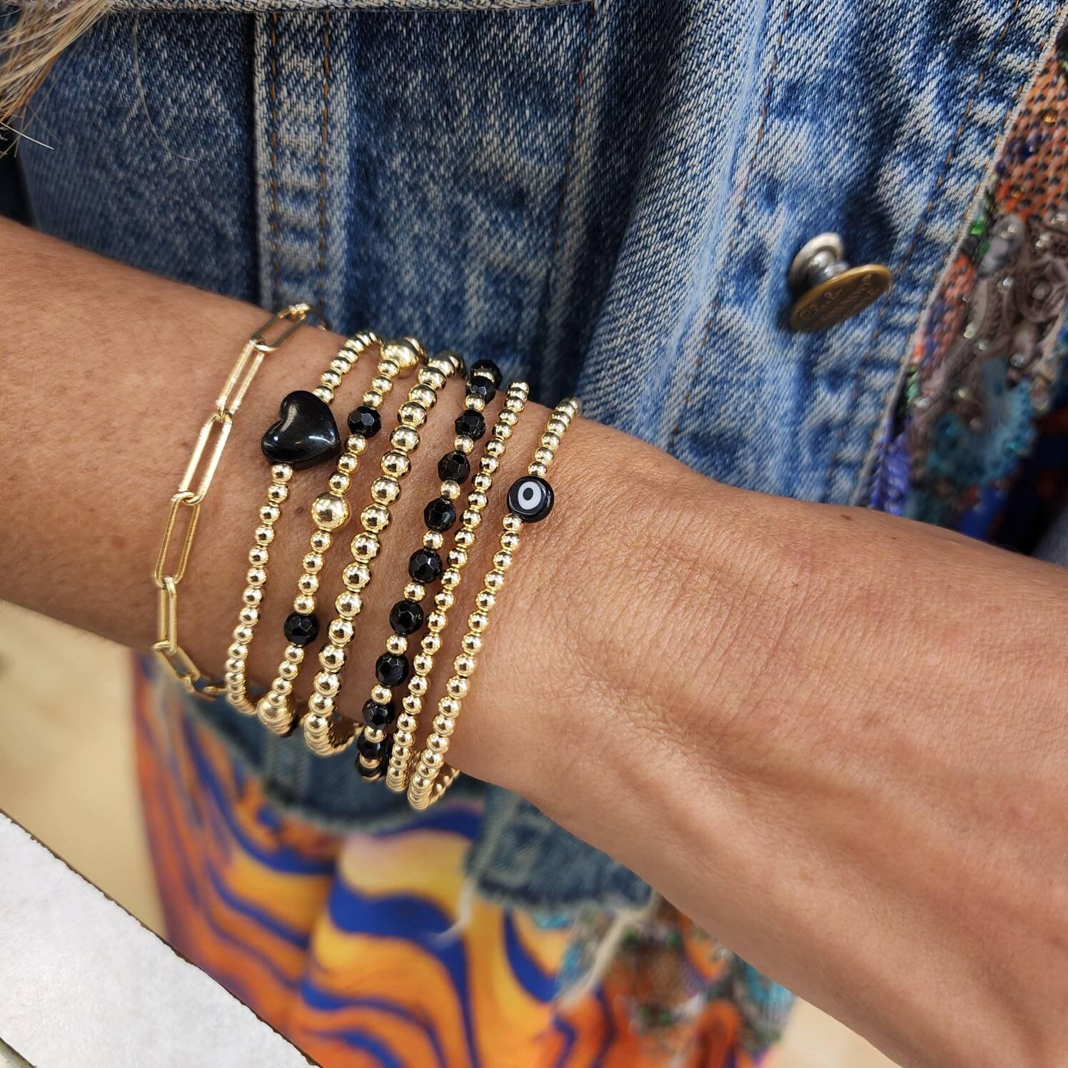 Discover the perfect blend of charm and elegance with our HEART Charm STRETCH Love Bracelet, a stunning addition to any jewelry collection. Handcrafted with meticulous attention to detail in our Miami workshop, this bracelet combines the timeless appeal of gold-filled beads with a customizable enamel heart pendant. Each piece is made to order, ensuring a personalized touch that reflects your unique style.