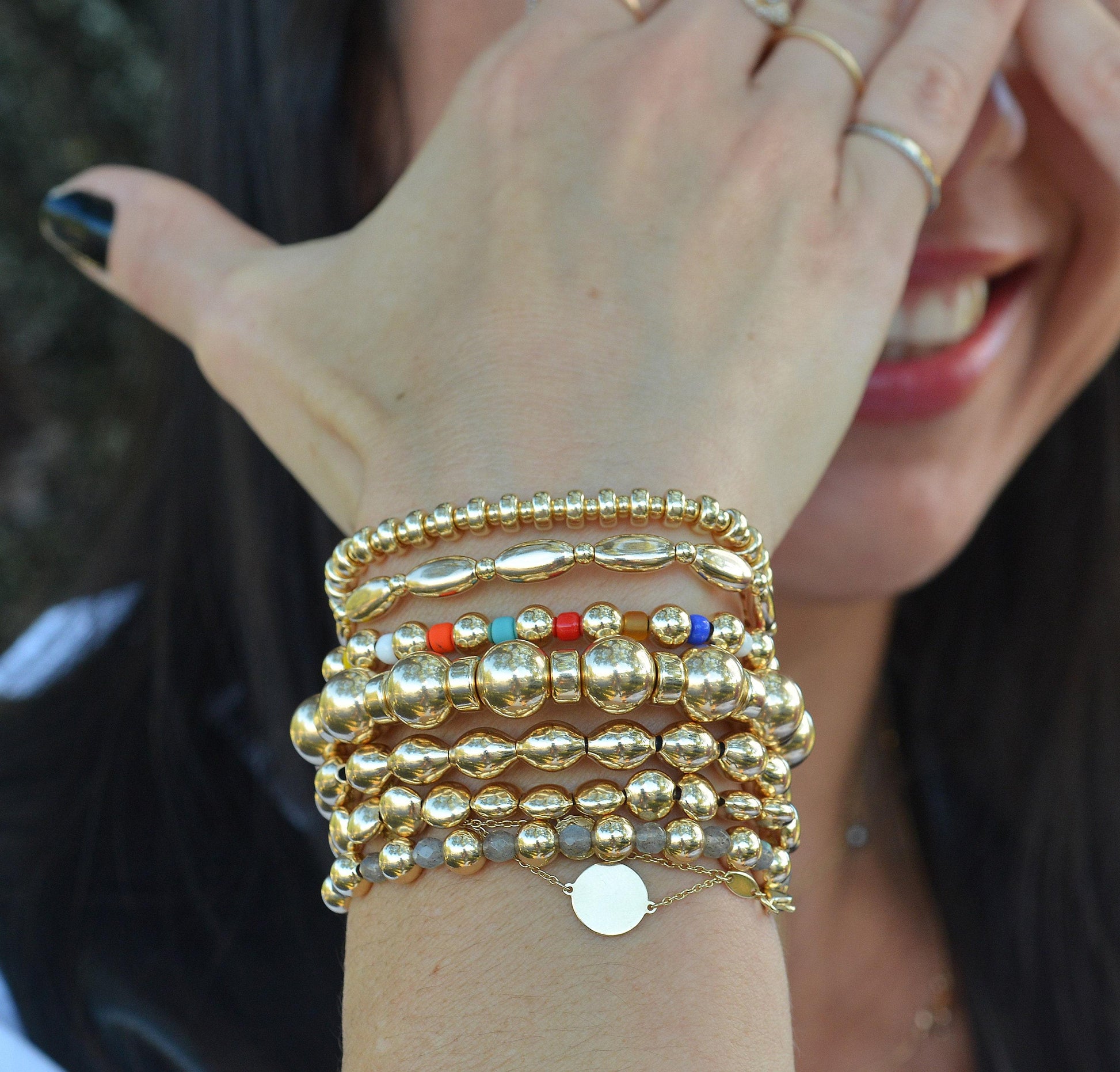 Gold Filled Large Oval Beaded Bracelet - Boho Hippie Style Stackable Layering for Women Tarnish-Free