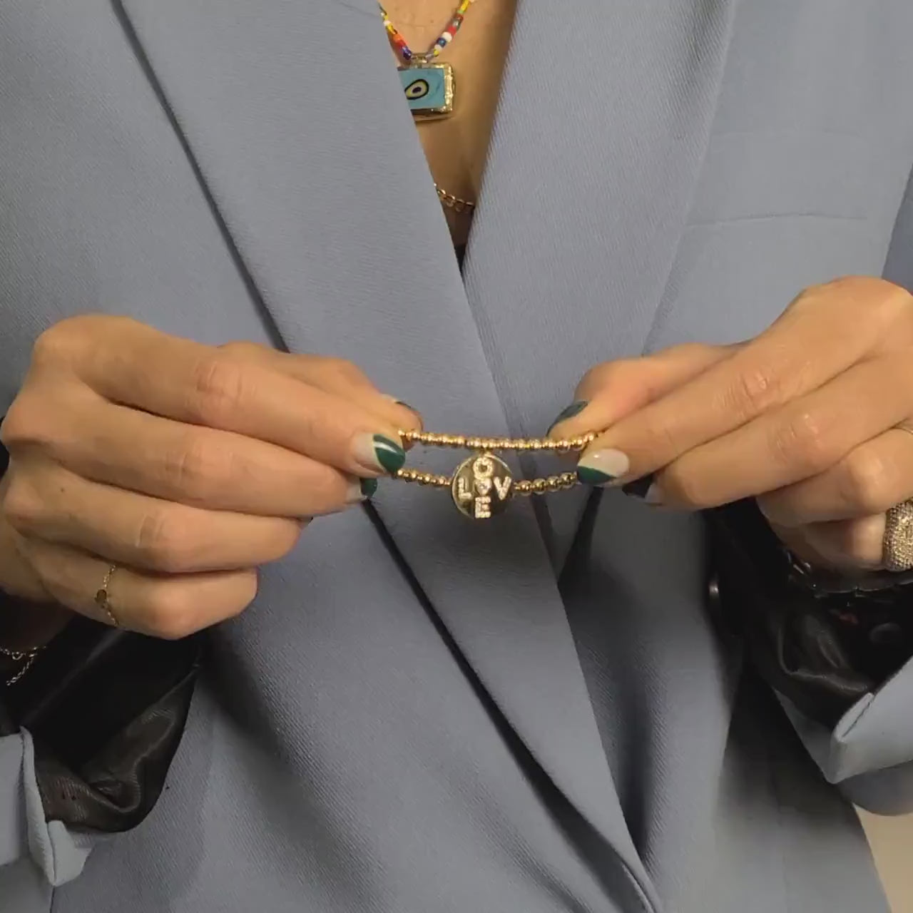 Gold Filled Love Charm Bracelet - Delicate Stretch Fit for Women - Stackable and Stylish