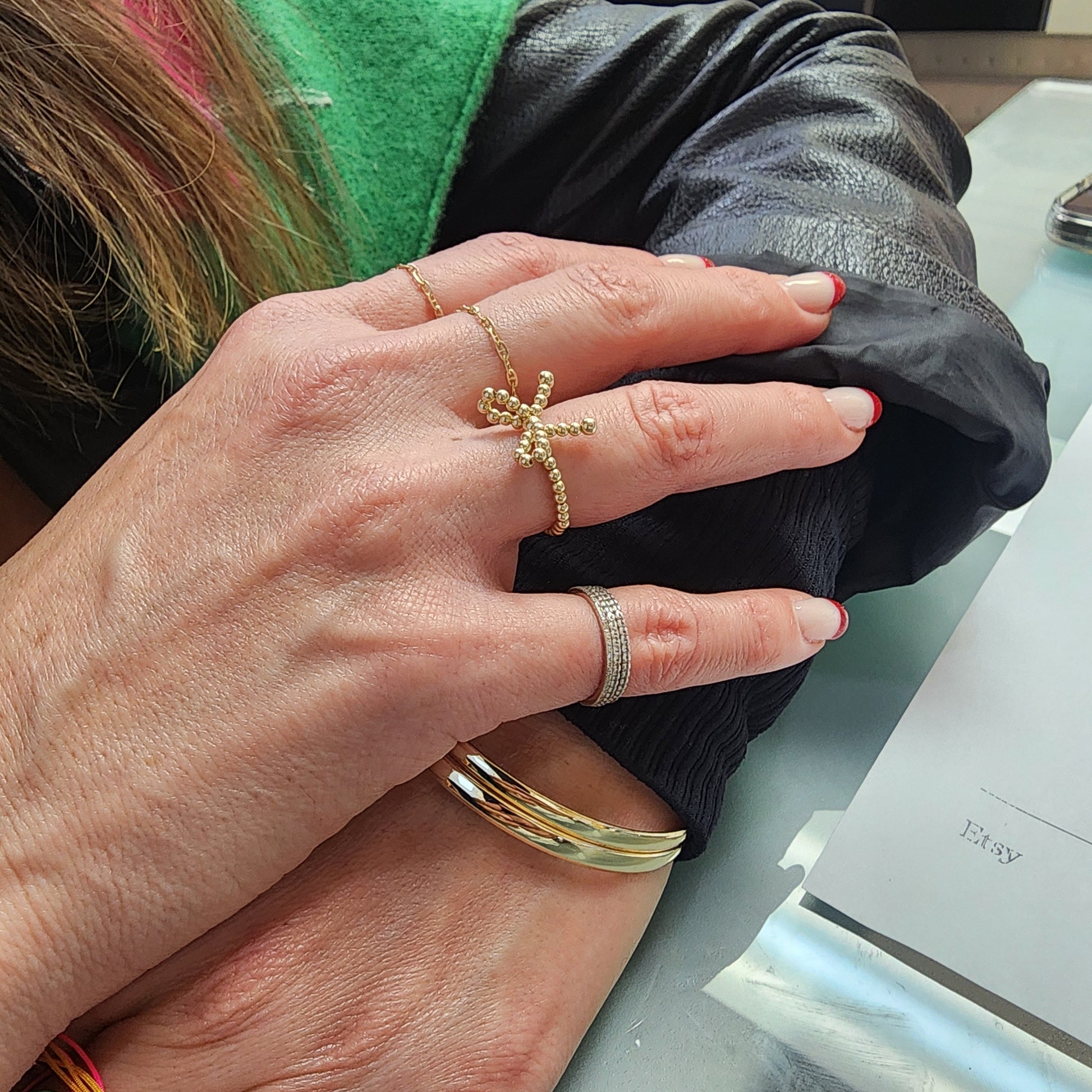 Indulge in the beauty of handmade jewelry that's as unique as you are. Elevate your style effortlessly with our BOW Bead Gold Filled STACKING Stretch RING, where timeless craftsmanship meets contemporary elegance. Treat yourself or a loved one to a piece that celebrates individuality and artistry, crafted with love and dedication.