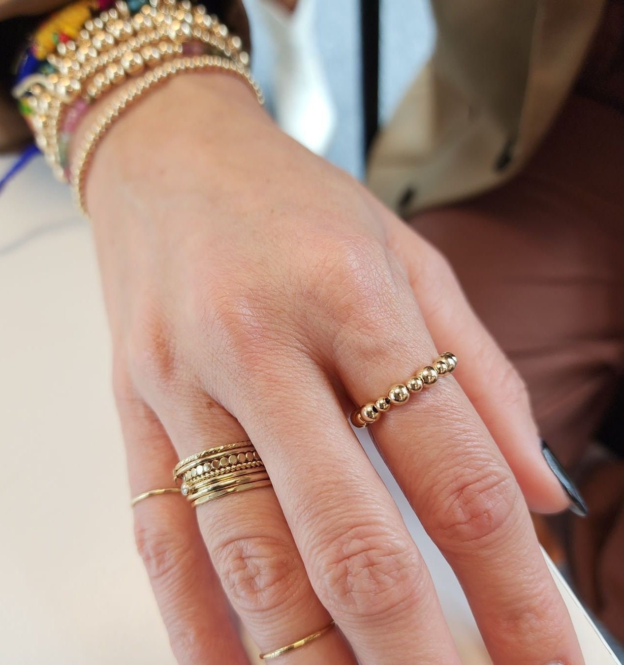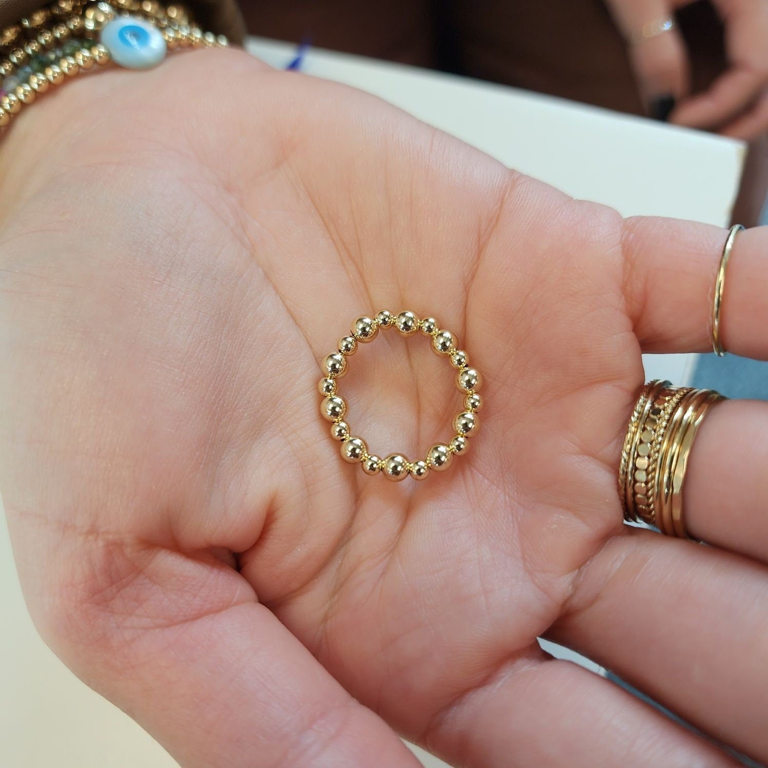 Indulge in jewelry that’s not only a reflection of style but also a commitment to craftsmanship. Whether for yourself or as a thoughtful gift, our Delicate Gold Filled Stacking Stretch Ring promises timeless beauty and enduring quality. Embrace the artistry and make a statement with jewelry that speaks volumes about your unique sense of style.