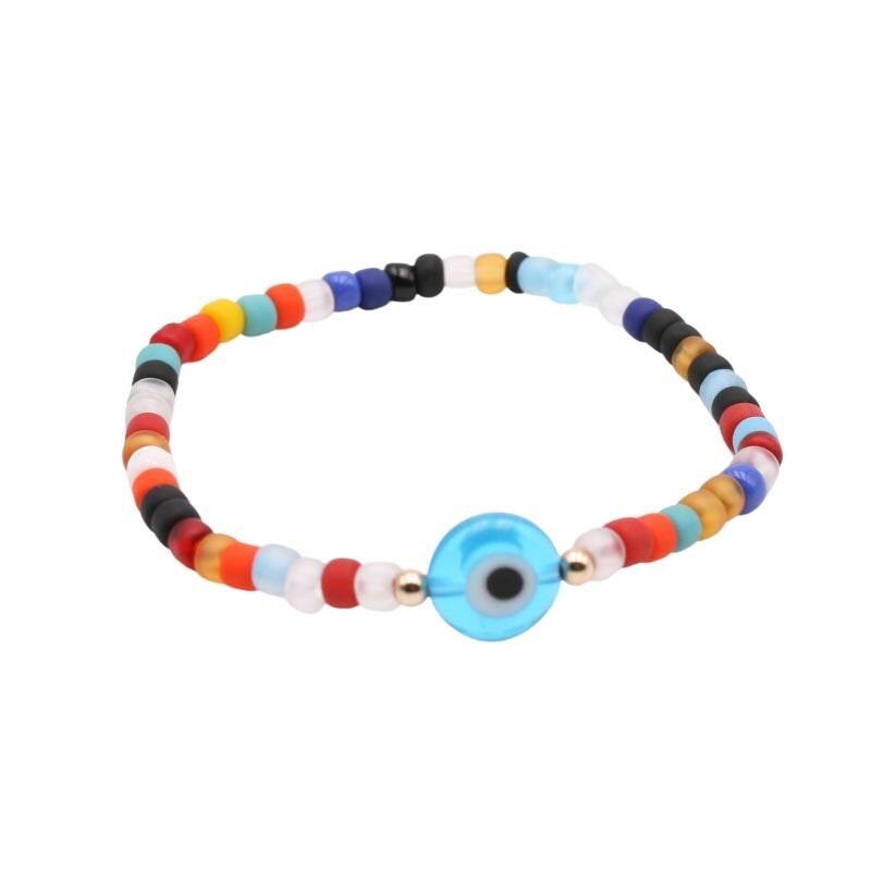 Good Luck Evil Eye Bracelet Multicolor Seed Beads Gold Filled Stretch Bracelet - Tarnish Free - Waterproof