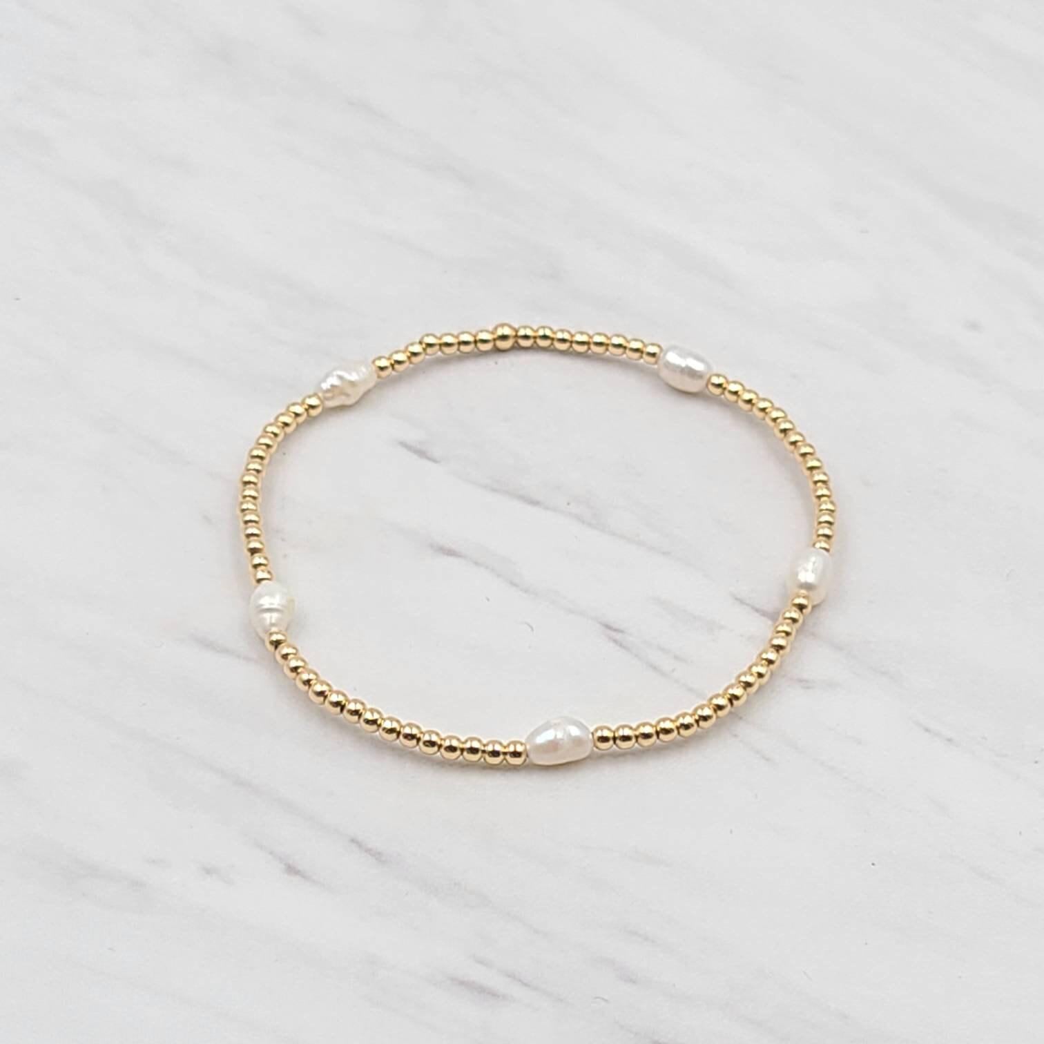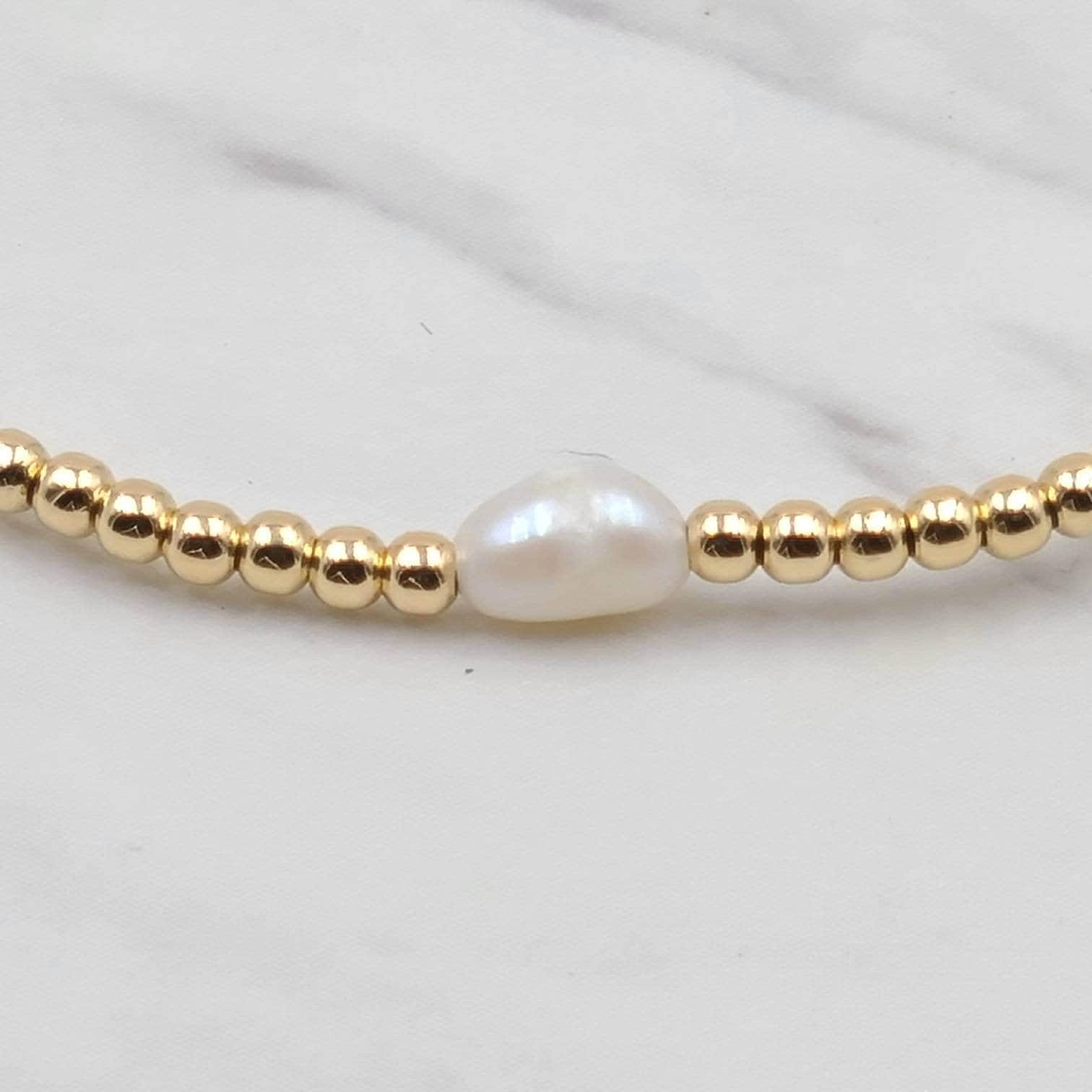 Handcrafted Fresh Water Pearl Station Bracelet - 2 mm 14kt Gold Filled with Personalization Options
