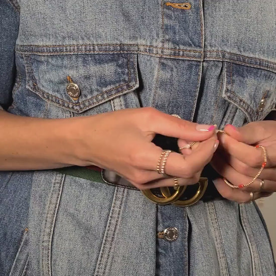 Discover the charm of our Fresh Water Pearl Beads Hippie Bracelet, a boho-inspired piece handcrafted with care in our Miami workshop. Each bracelet features delicate 2 mm Gold Filled beads interlaced with lustrous 5x3 mm Fresh Water Pearls, creating a timeless accessory that exudes both elegance and casual flair.